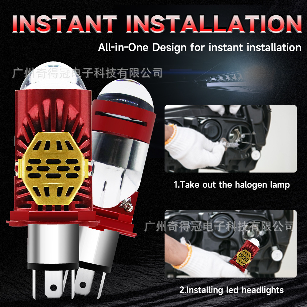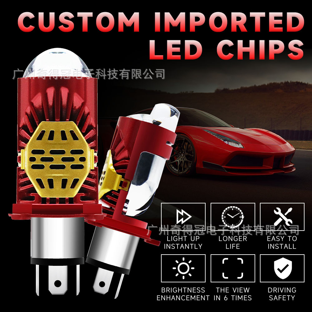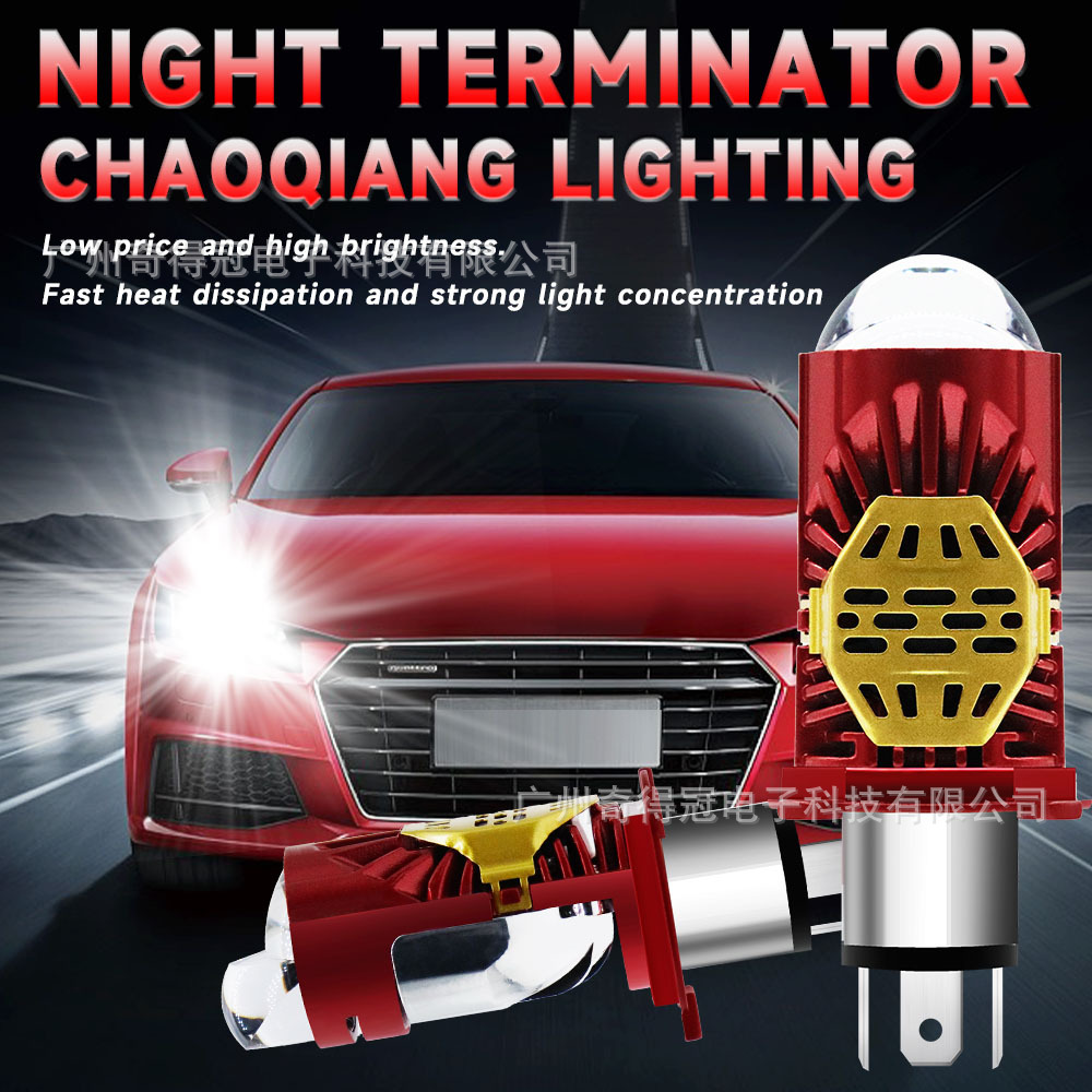 Lampu depan LED mobil H4 colokan langsung lensa ganda laser lampu mobil modifikasi lampu sorot motor produsen grosir