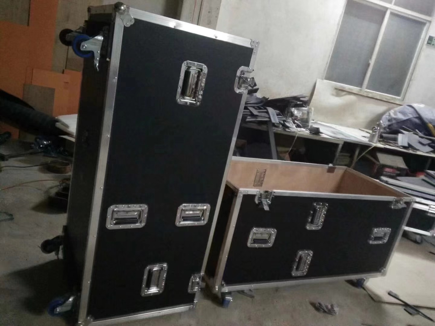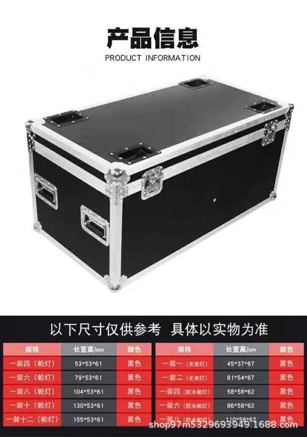 航空箱厂直发,物美价廉,采用防水防火加厚板材★ ★金属轮子,万向轮设计,带灯钩位,带轮窝,带双刹车轮,方便安全★ ★可按尺寸要求定做★ 这款是装不防水帕灯航空箱 需要装防水帕灯航空箱需要联系客服 可装八个大功率帕灯。36颗或54颗大功率帕灯,方便搬运,防震包装,安全可靠,保证帕灯的质量! 也可按客户要求定做各种尺寸的航空箱。音响、调音台、机柜、线箱、杂物箱,都可定做的。