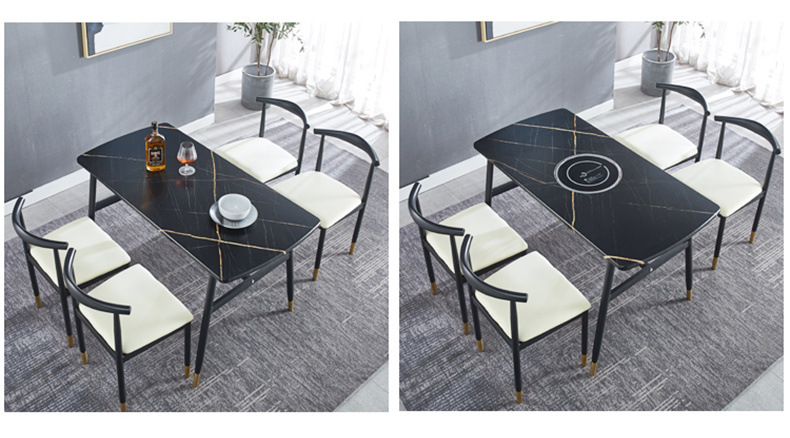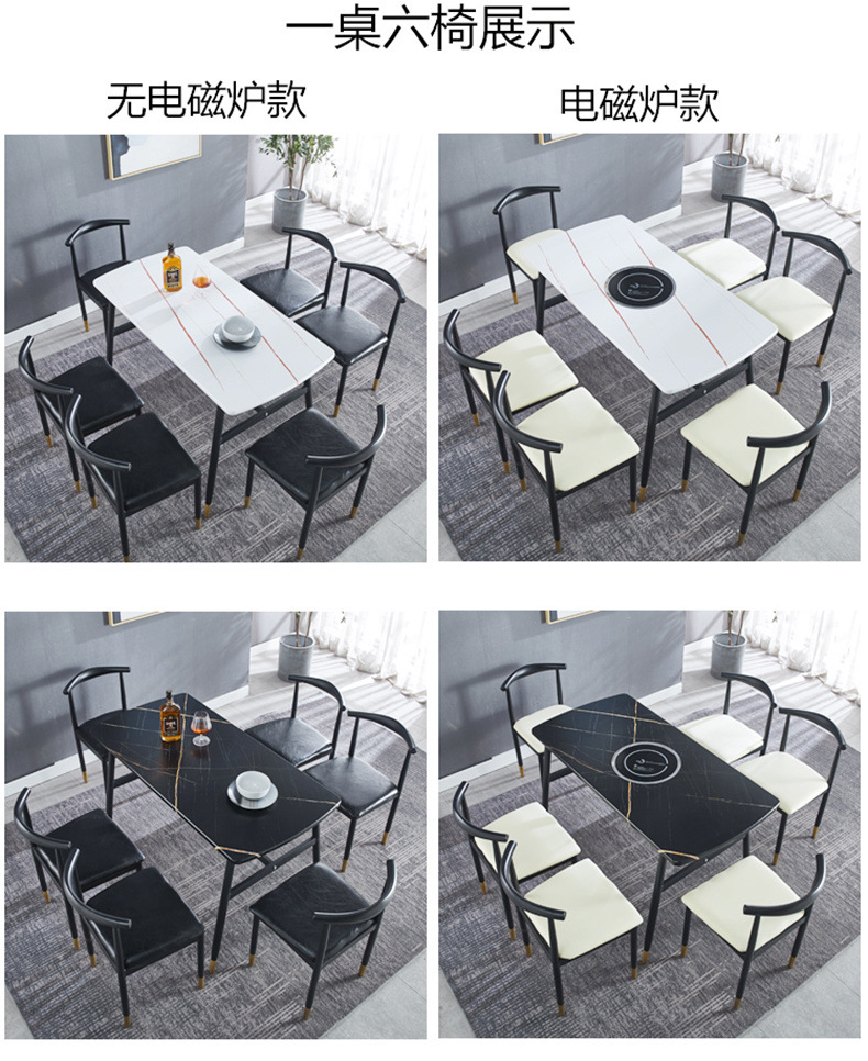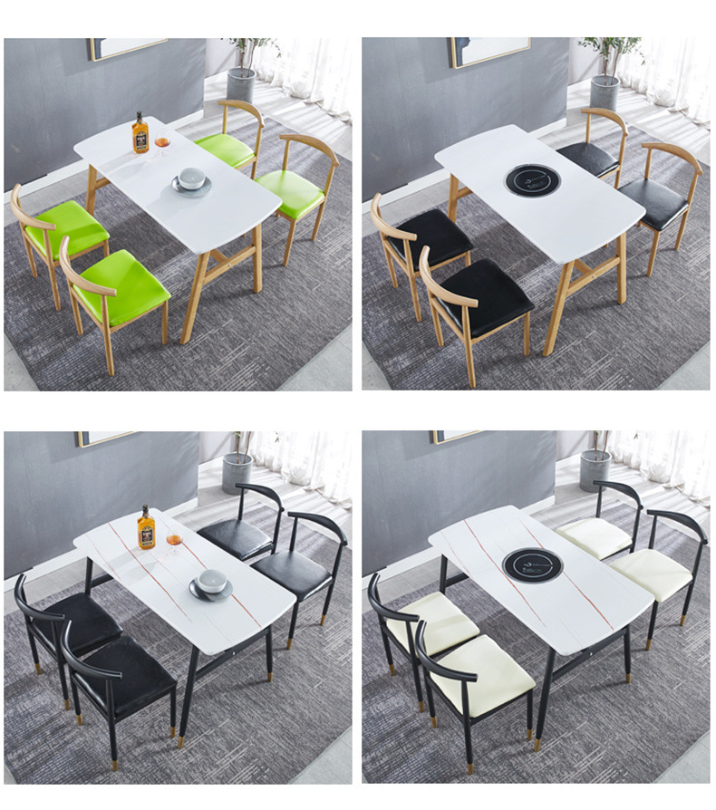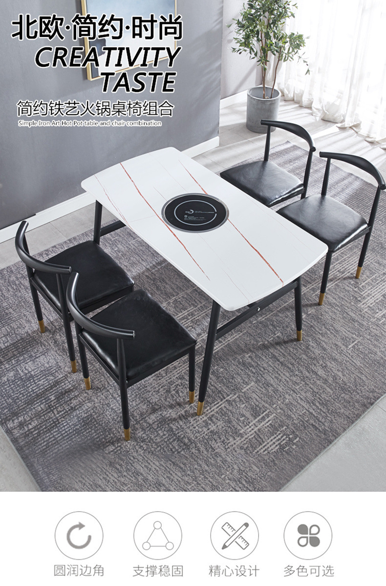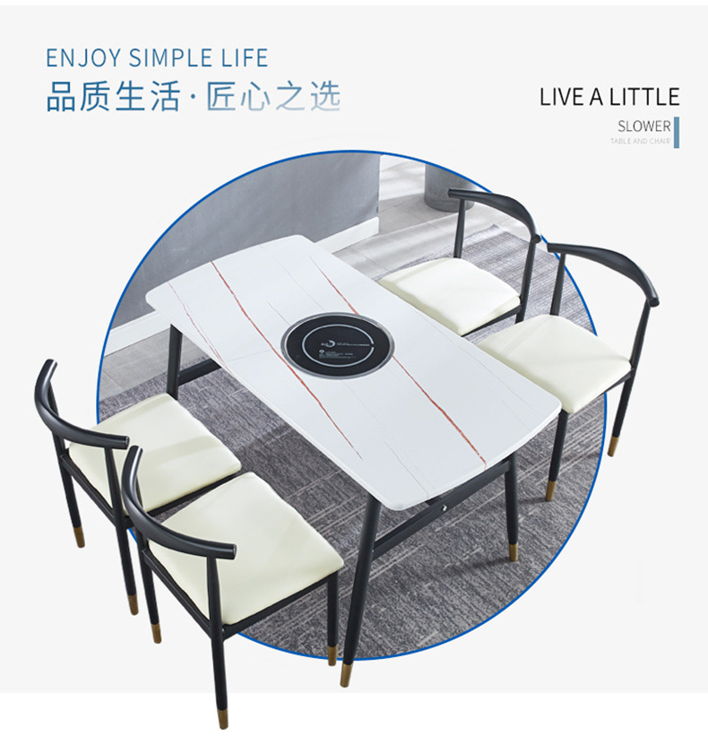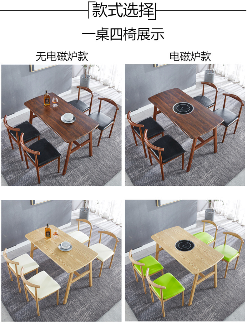 餐桌小户型家用火锅长方形电磁炉串串香餐桌椅休闲快餐厅桌椅组