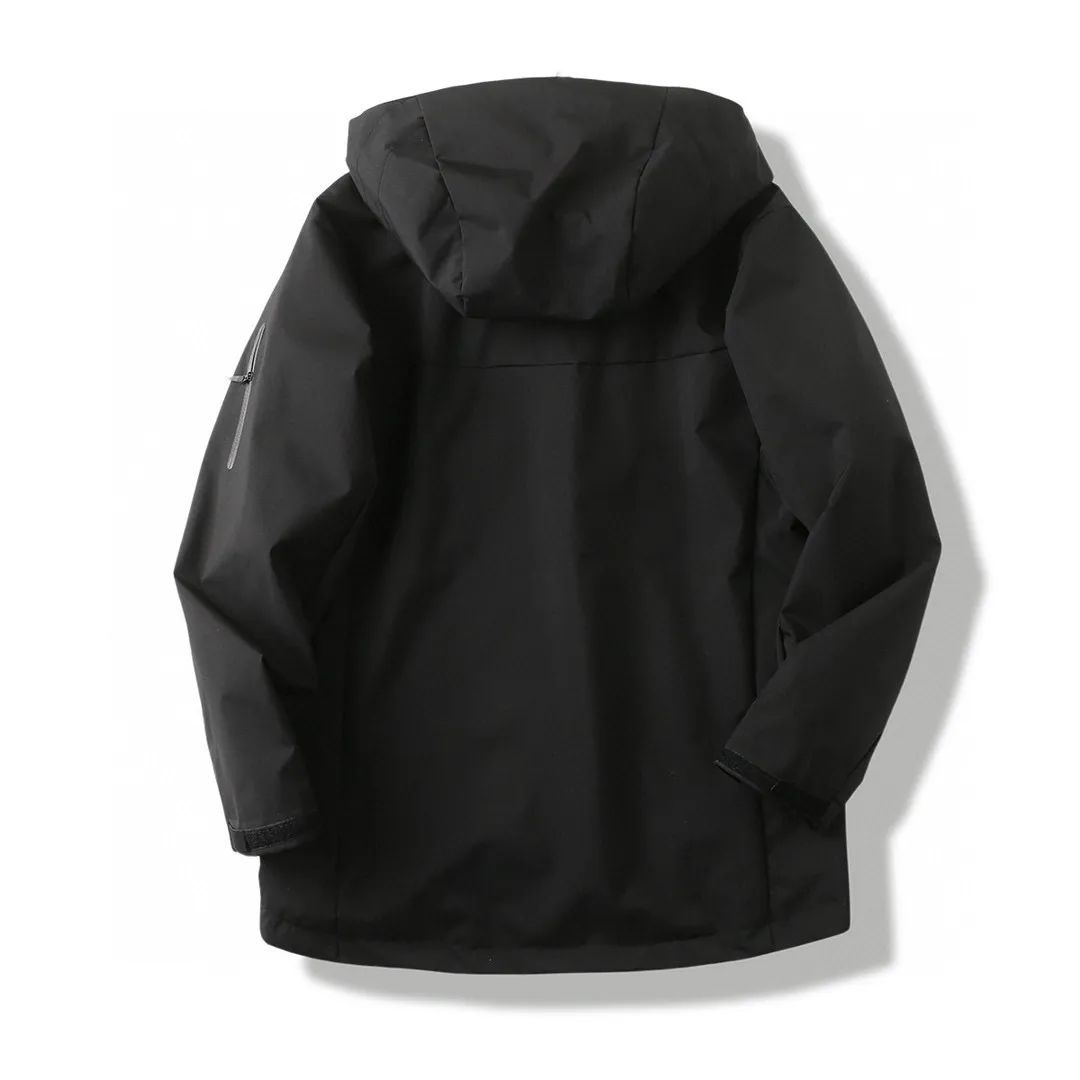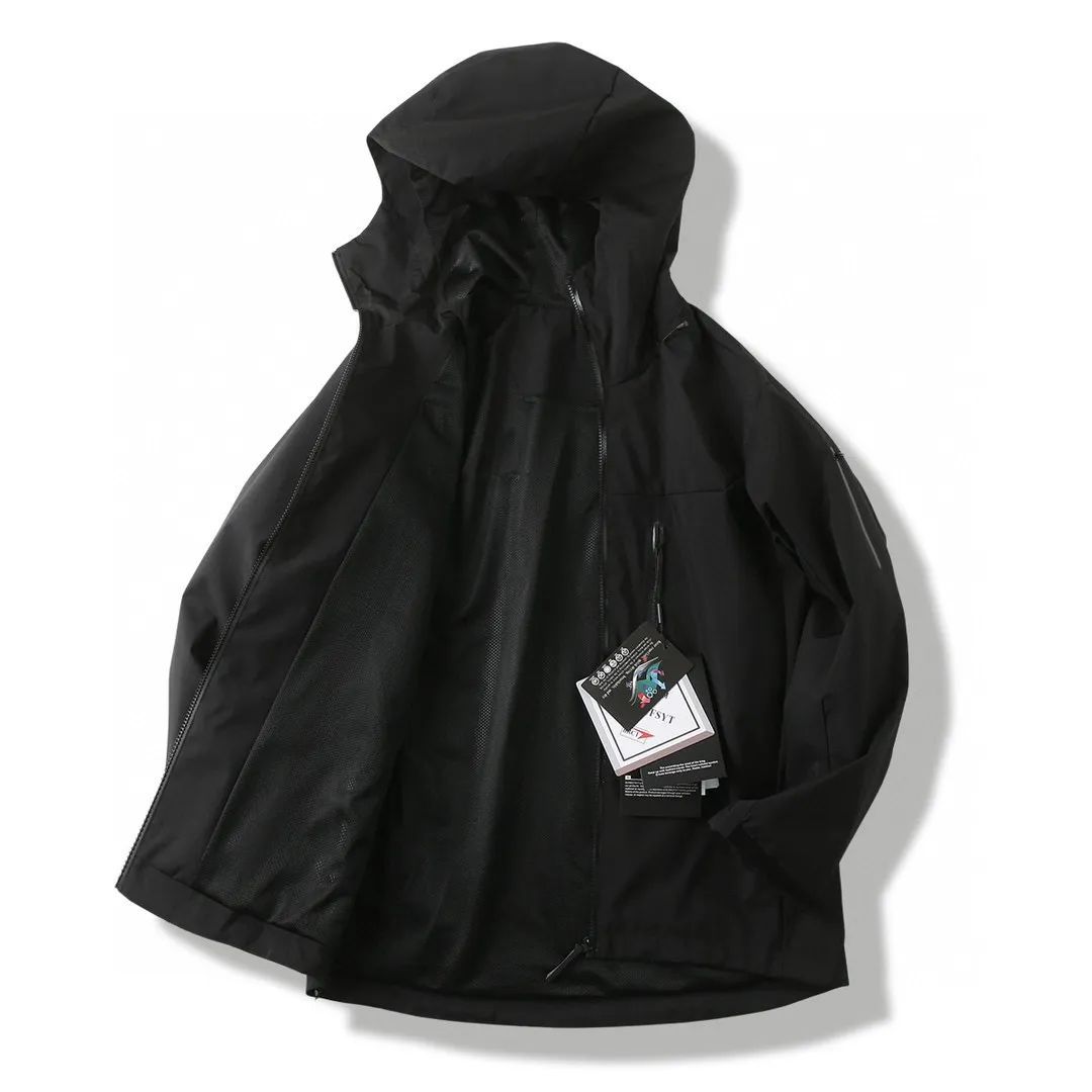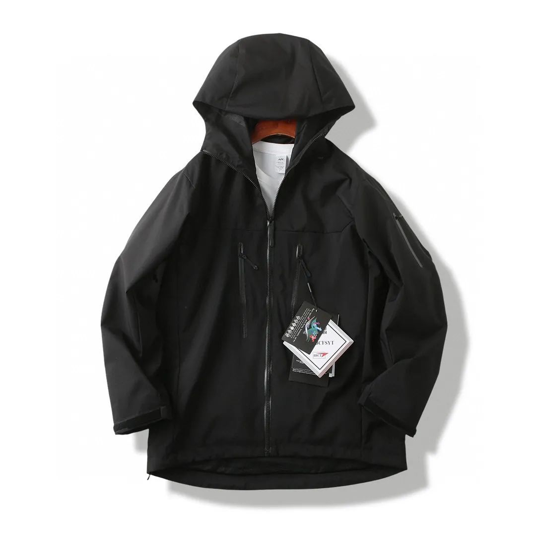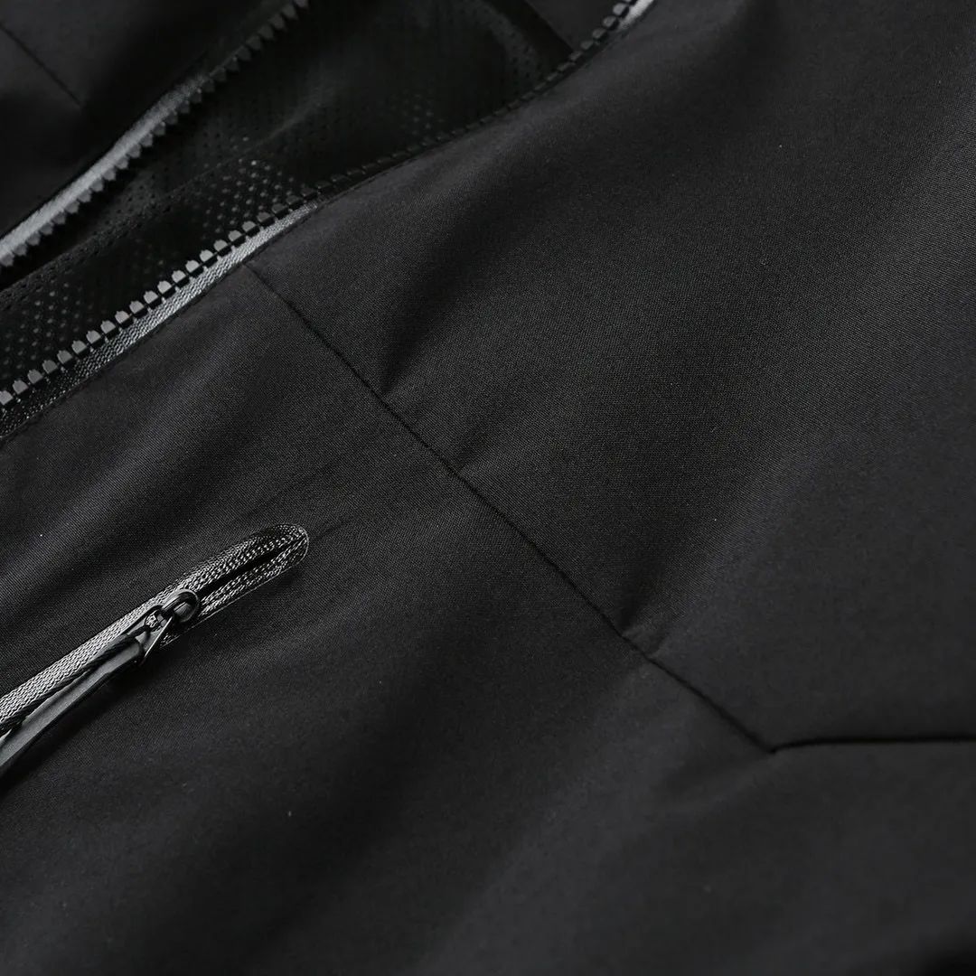 轻薄而耐磨,防风、防水且透气,适合多种活动穿着。 -头盔兼容兜帽防护良好且不影响视线,胸前压胶双拉链,便于取放物品,腋下压胶拉链便于透气,不闷热!