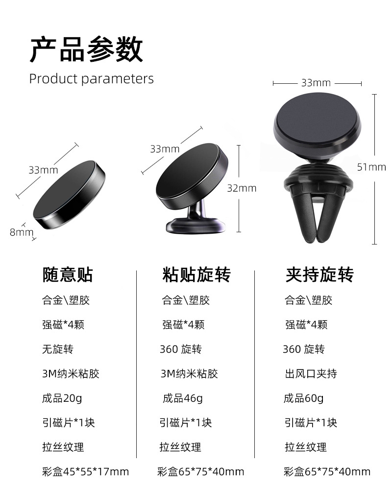 Braket magnetik mobil, braket navigasi dasbor mobil logam paduan, braket ponsel Mobil outlet udara grosir