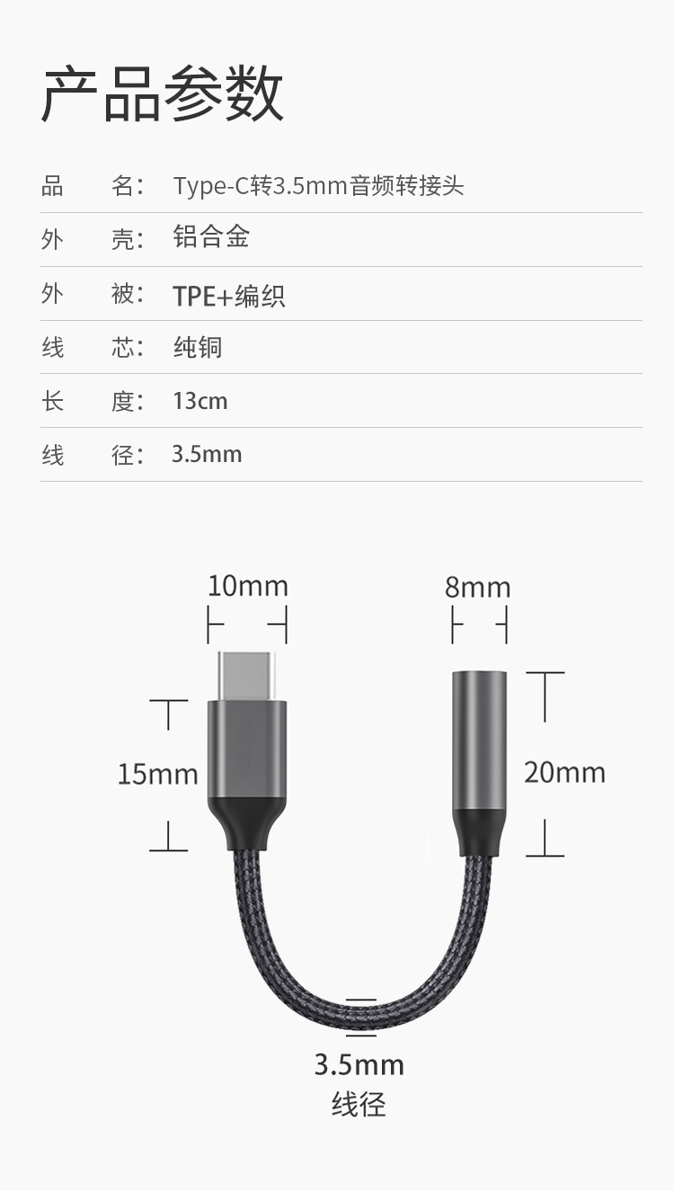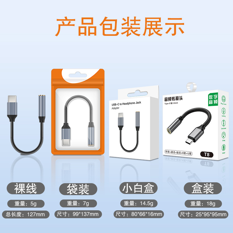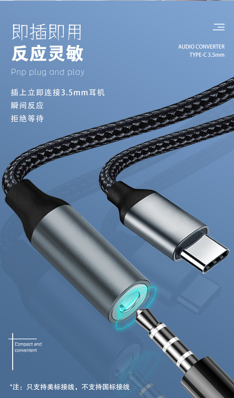 Kabel adaptor typec ke 3.5 cocok untuk headphone ponsel Huawei vivo, konverter audio digital