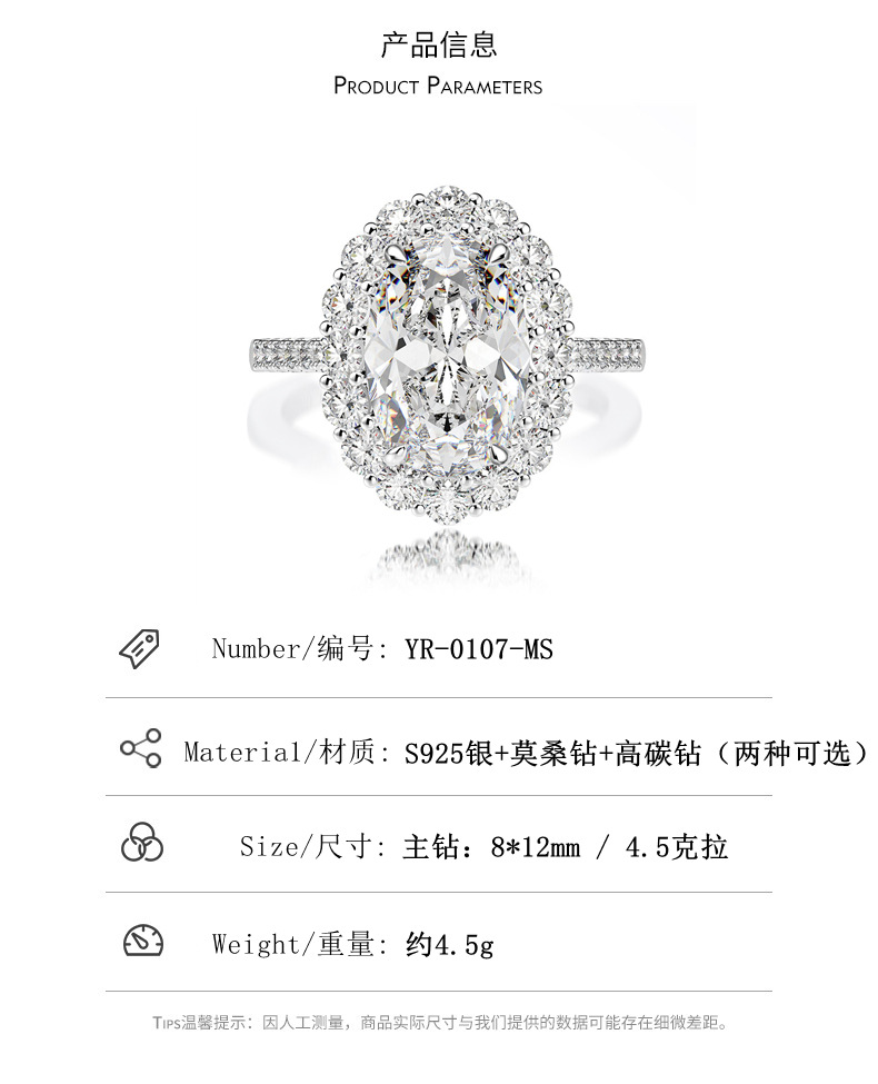 Cincin berlian 4.5 karat, cincin berlian wanita bentuk 8*12 telur merpati 925 sterling silver, perhiasan berlian Simulasi Eropa dan Amerika lintas batas