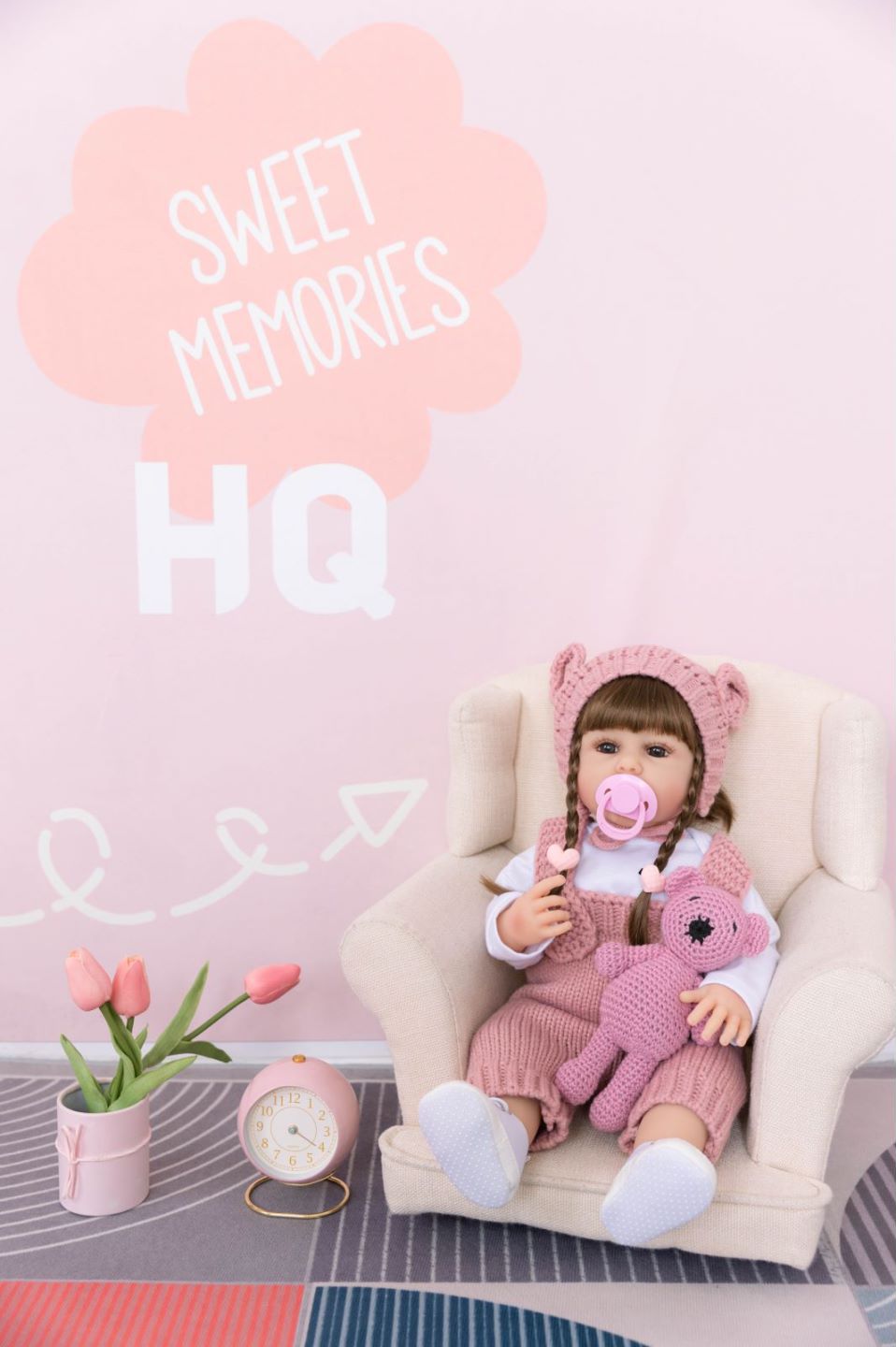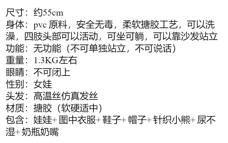 55cm perdagangan luar negeri makan tangan lucu TikTok dress-up rambut panjang simulasi Loli boneka terlahir kembali hadiah anak-anak vinil bermain