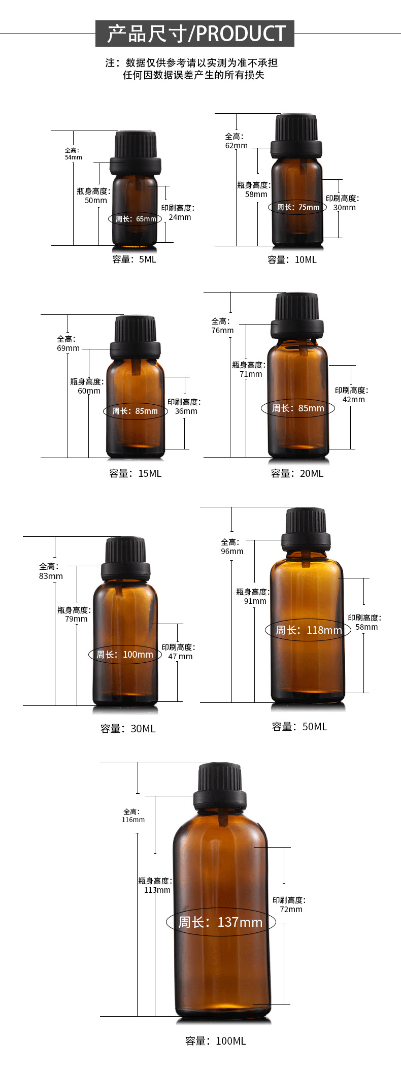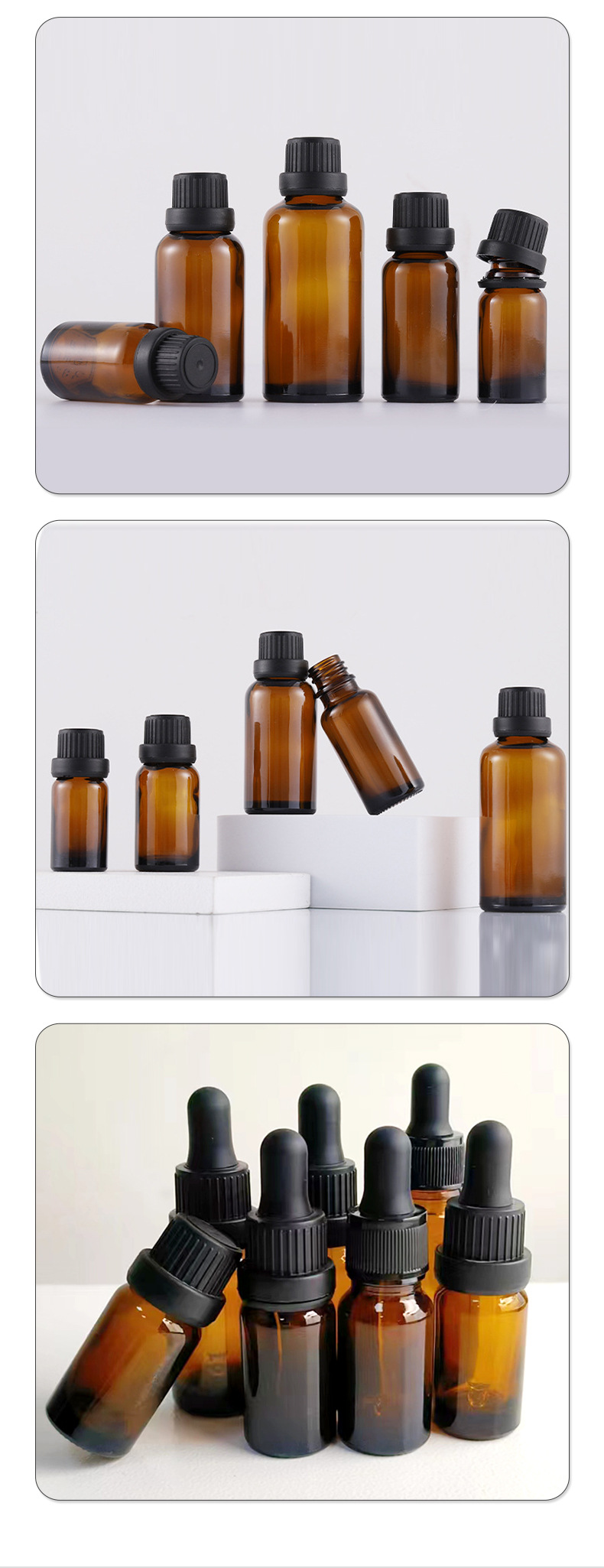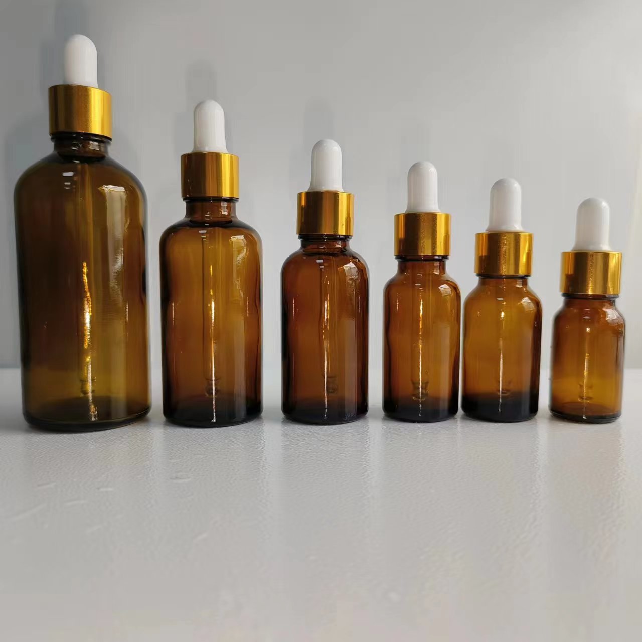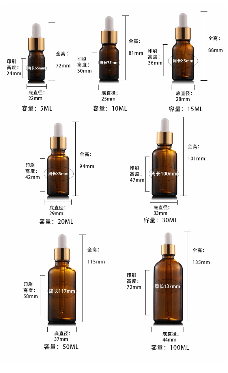 Botol vial transparan yang ringkas dan portabel, dapat disesuaikan dari pabrik, untuk esens dan pure dew, botol penetes kaca dengan stempel dan label emas, botol minyak esensial.