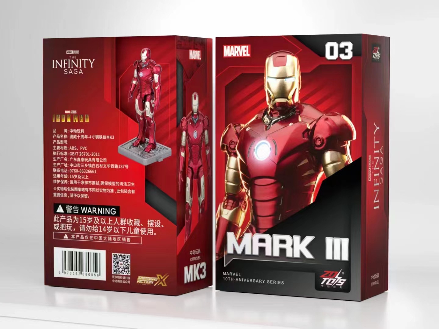 Zhongdong 4-inci versi dasar Iron Man MK3 versi Marvel hero Avengers bergerak mainan tangan