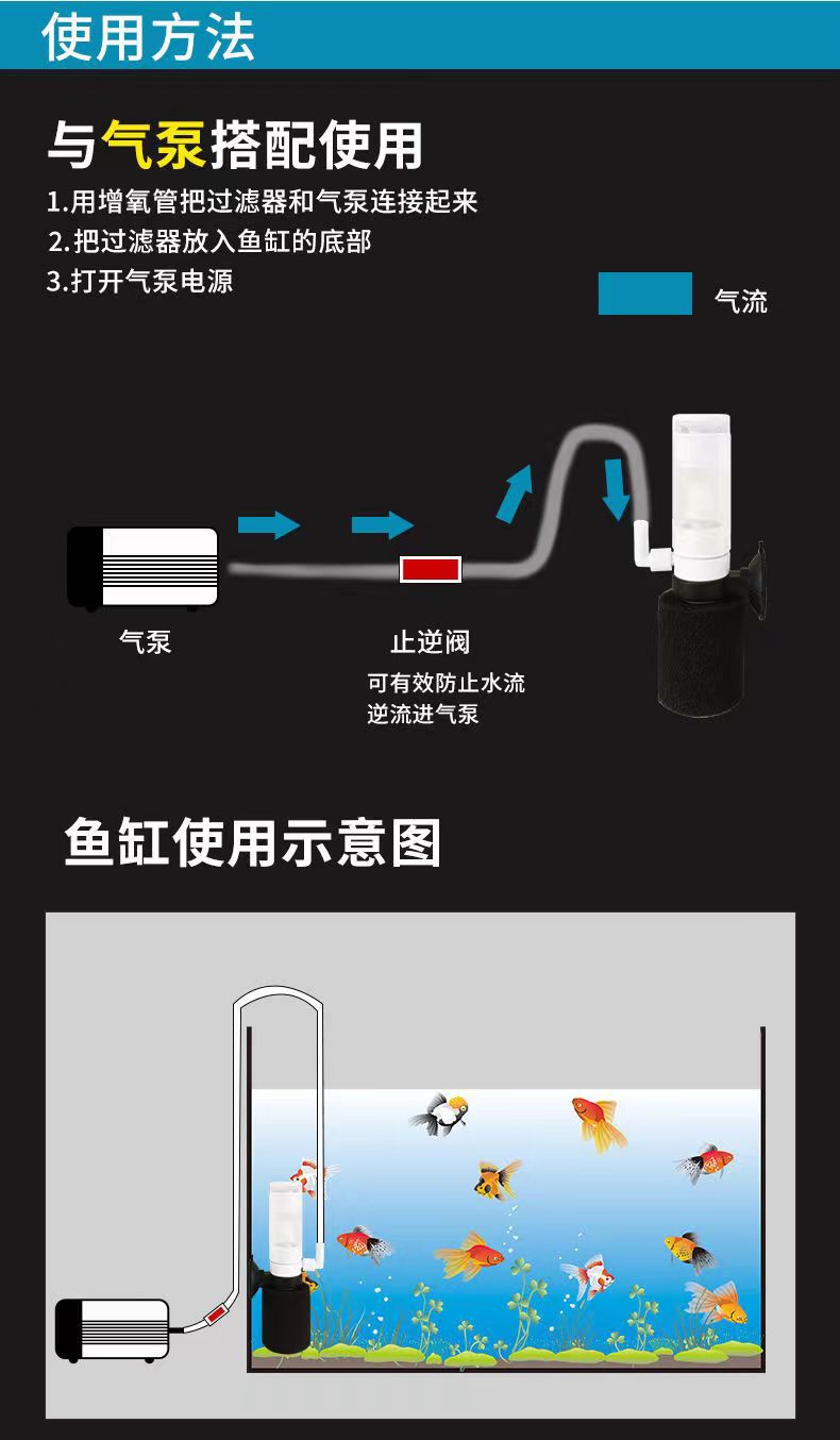 Tangki ikan khusus peri air tiga-dalam-satu filter pneumatik aerator kecil mini bisu peri air bawaan