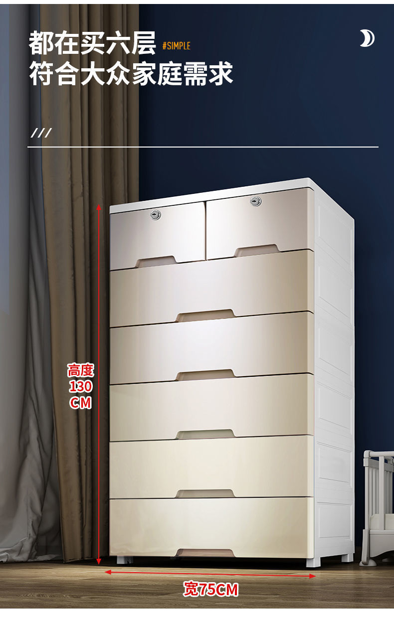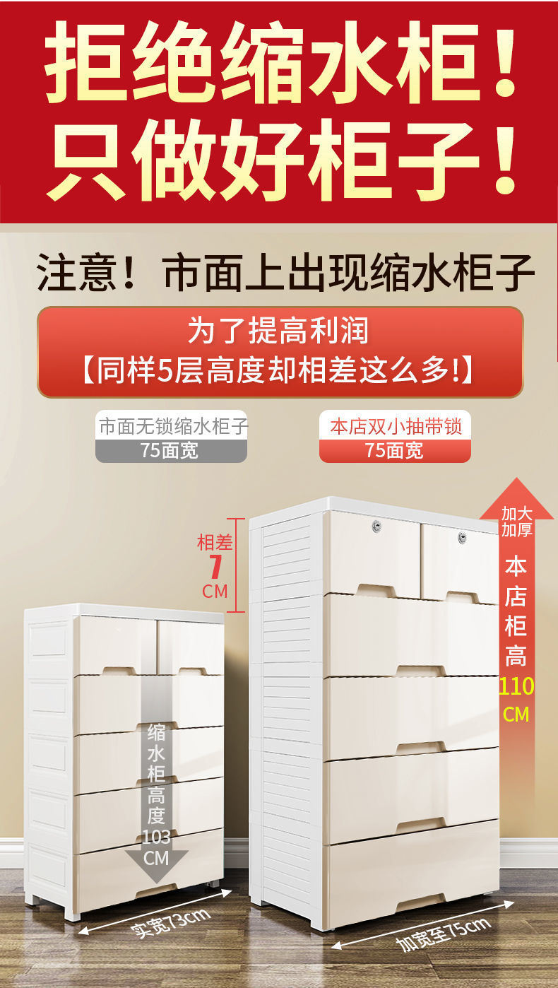 Kabinet penyimpanan Laci tebal ekstra besar 85 lebar loker plastik multifungsi kabinet pengatur lemari pakaian sederhana laci