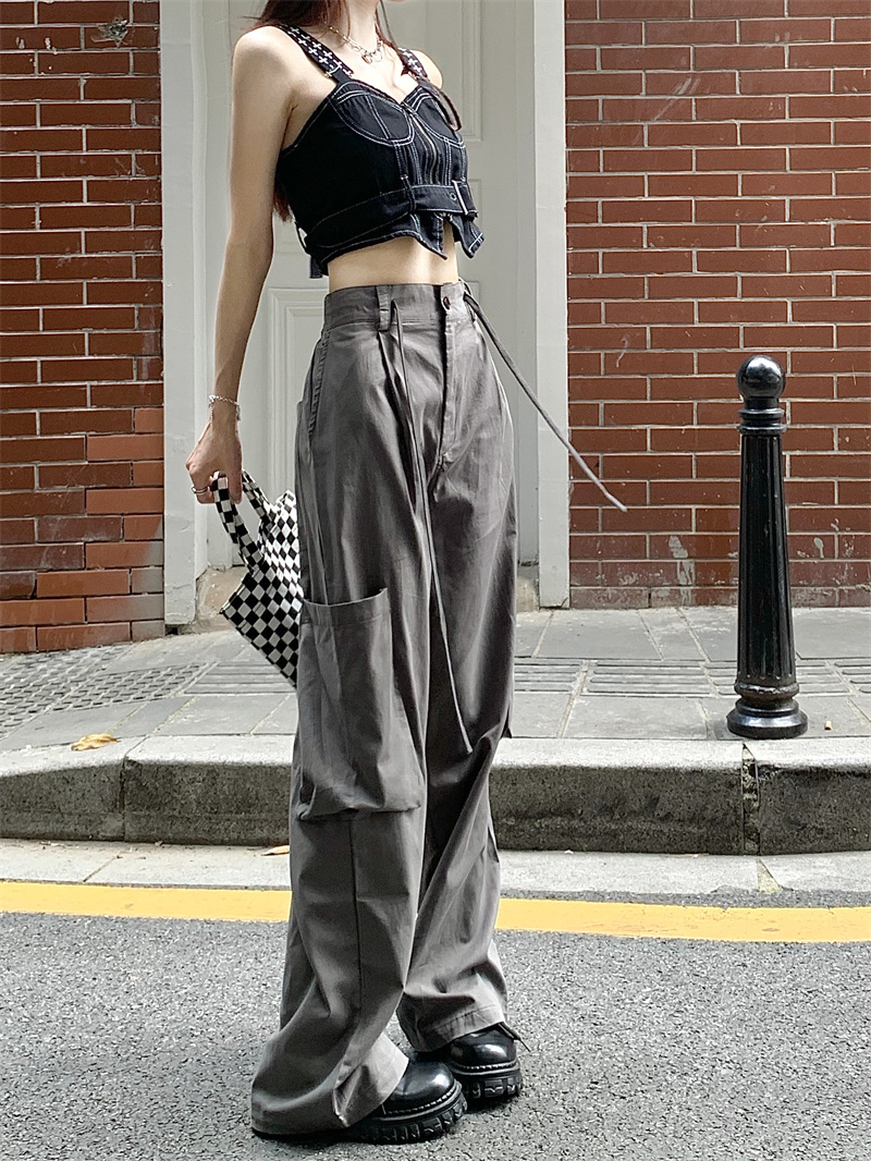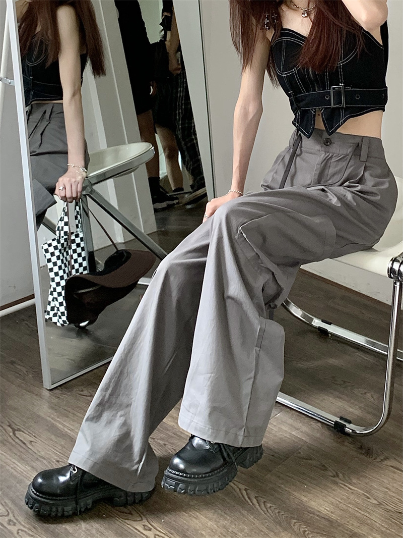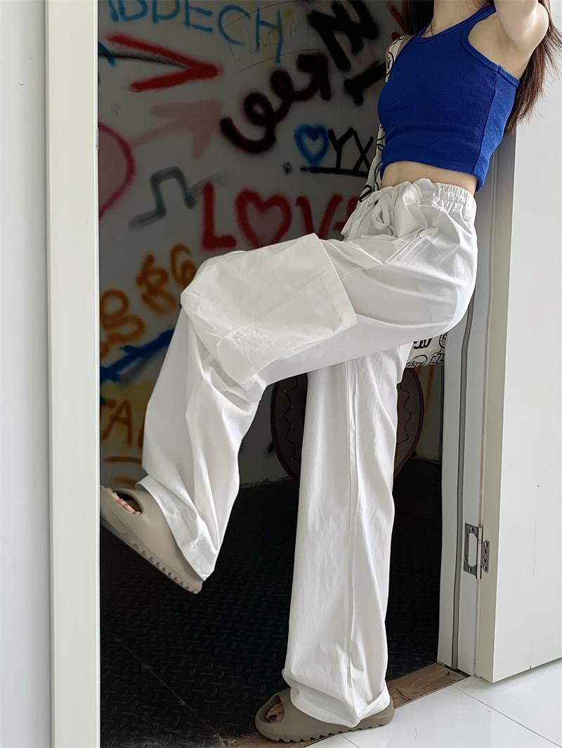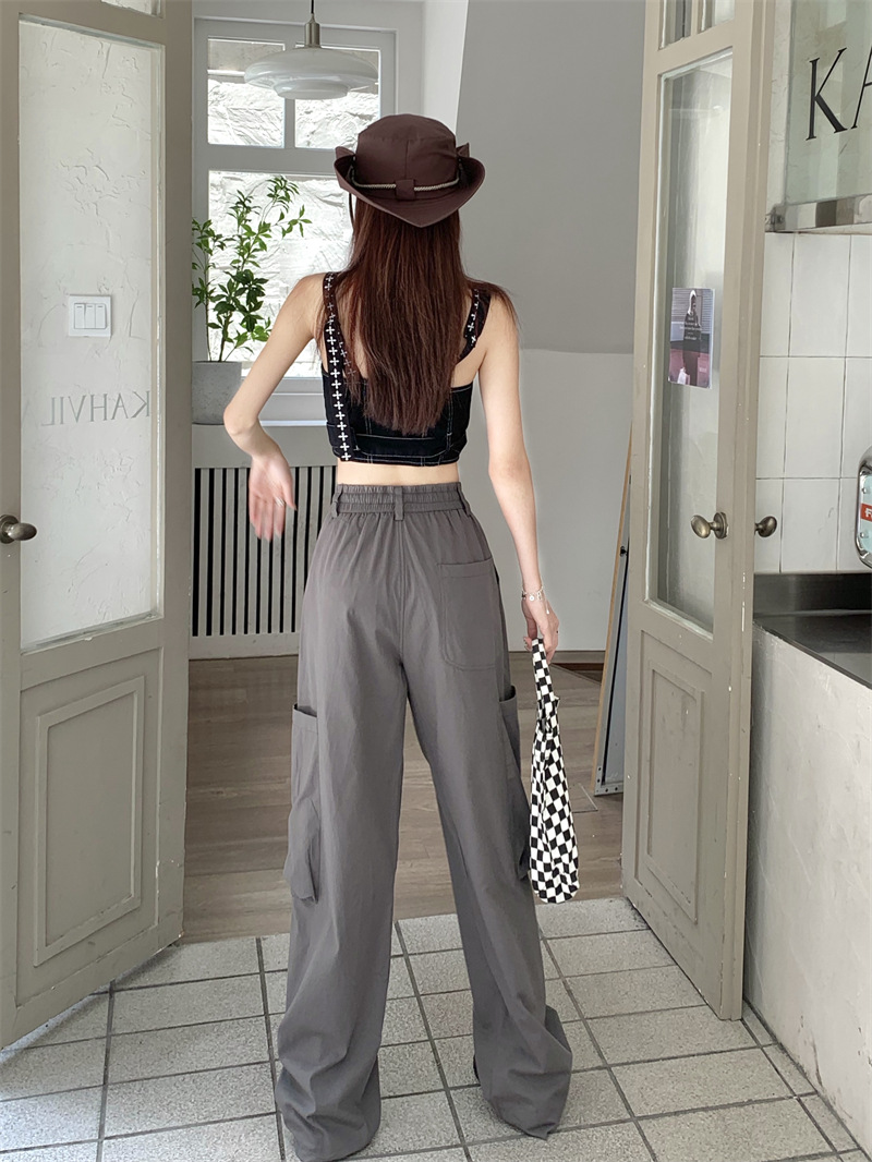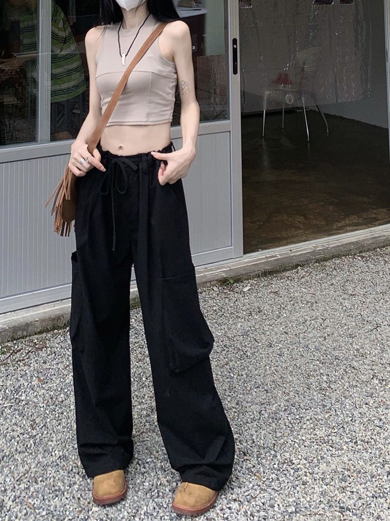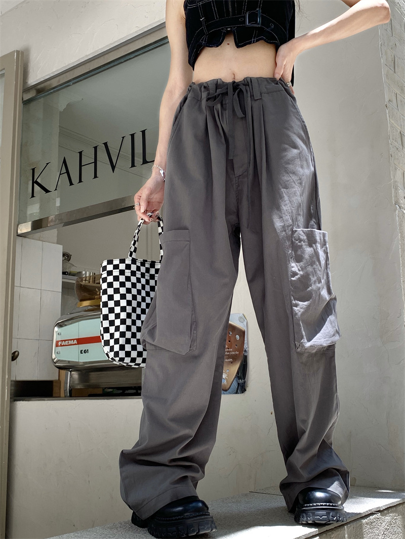 美式甜酷辣妹工装裤女大码休闲长裤夏季薄款高腰宽松阔腿运动裤子