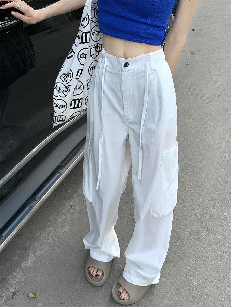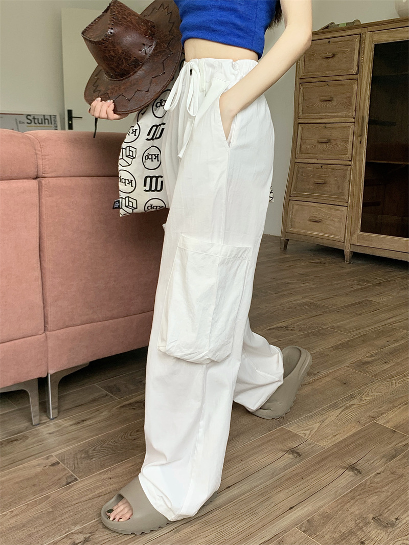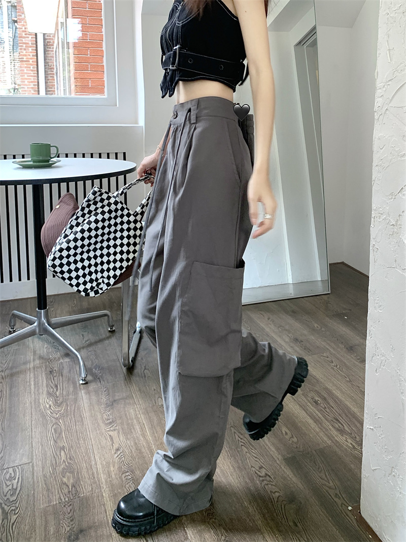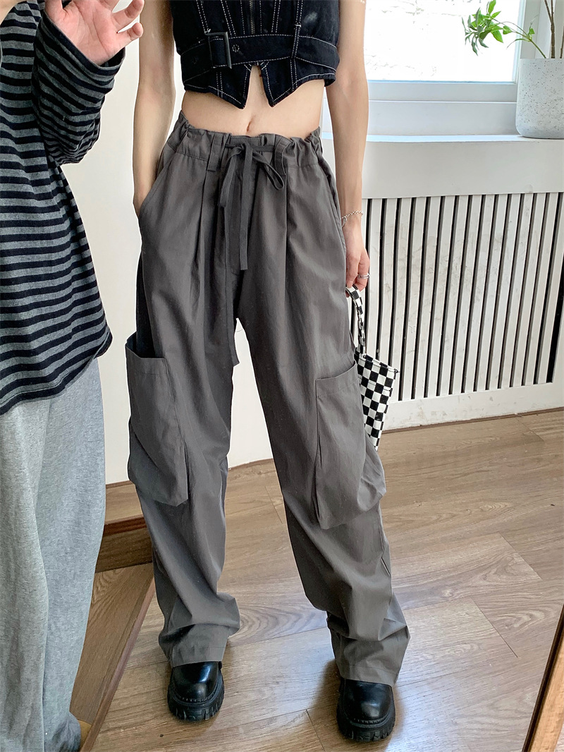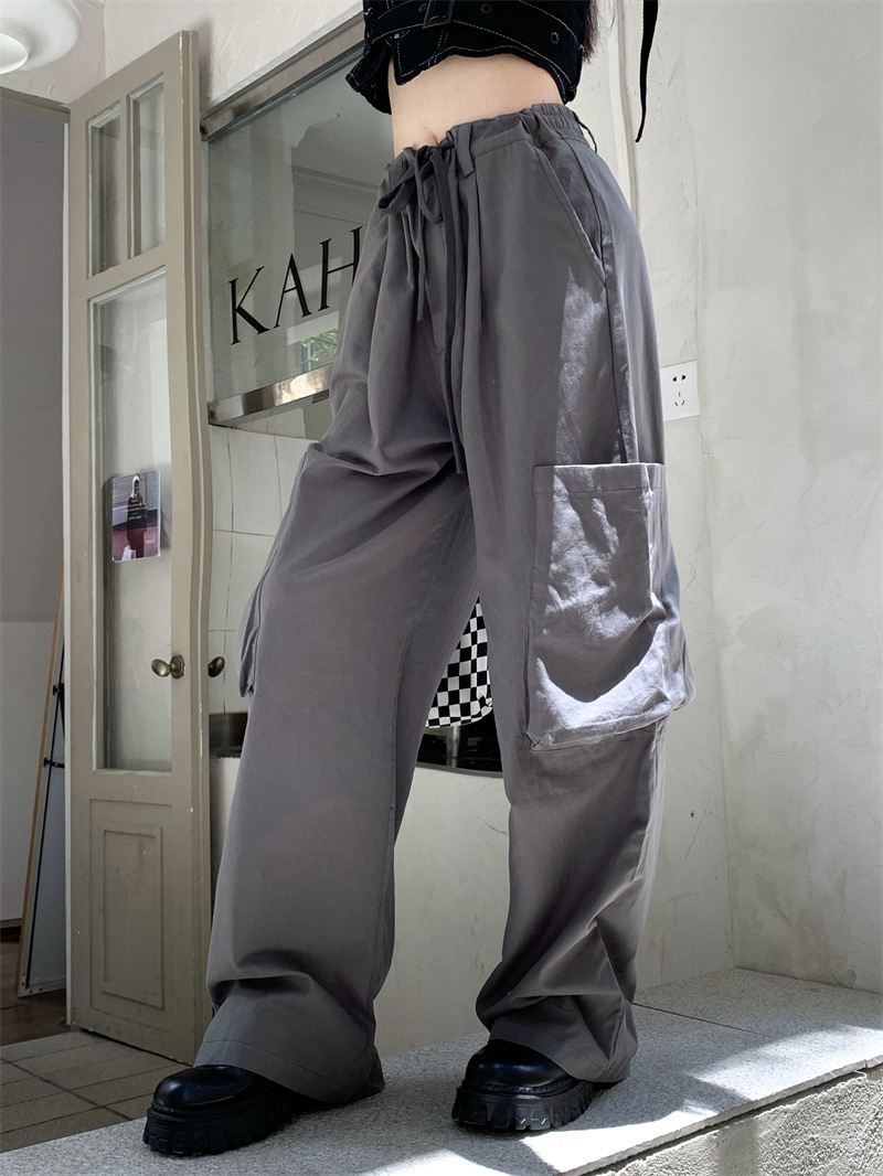 美式甜酷辣妹工装裤女大码休闲长裤夏季薄款高腰宽松阔腿运动裤子