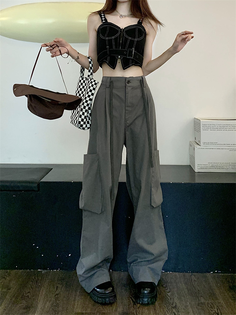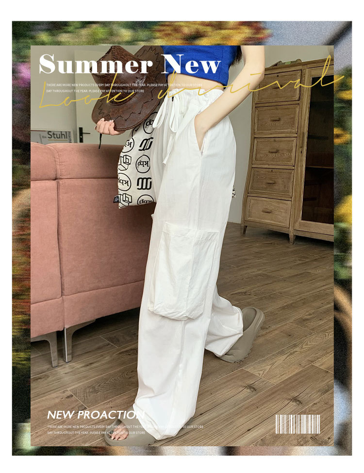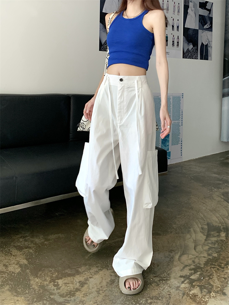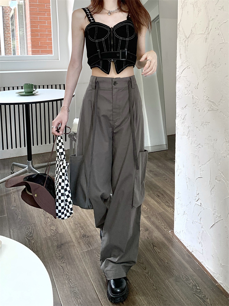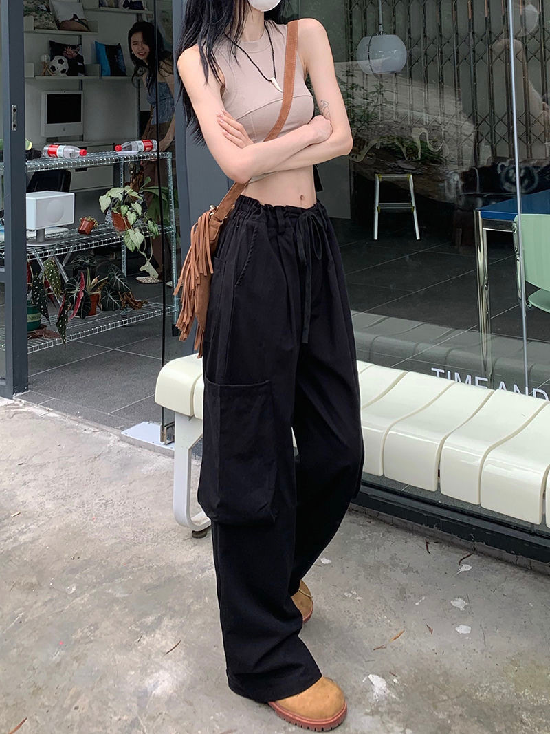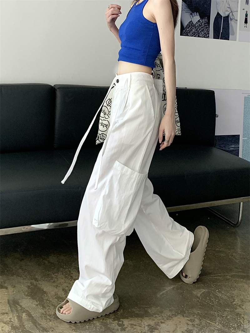 美式甜酷辣妹工装裤女大码休闲长裤夏季薄款高腰宽松阔腿运动裤子