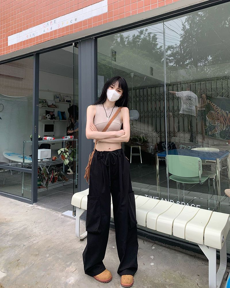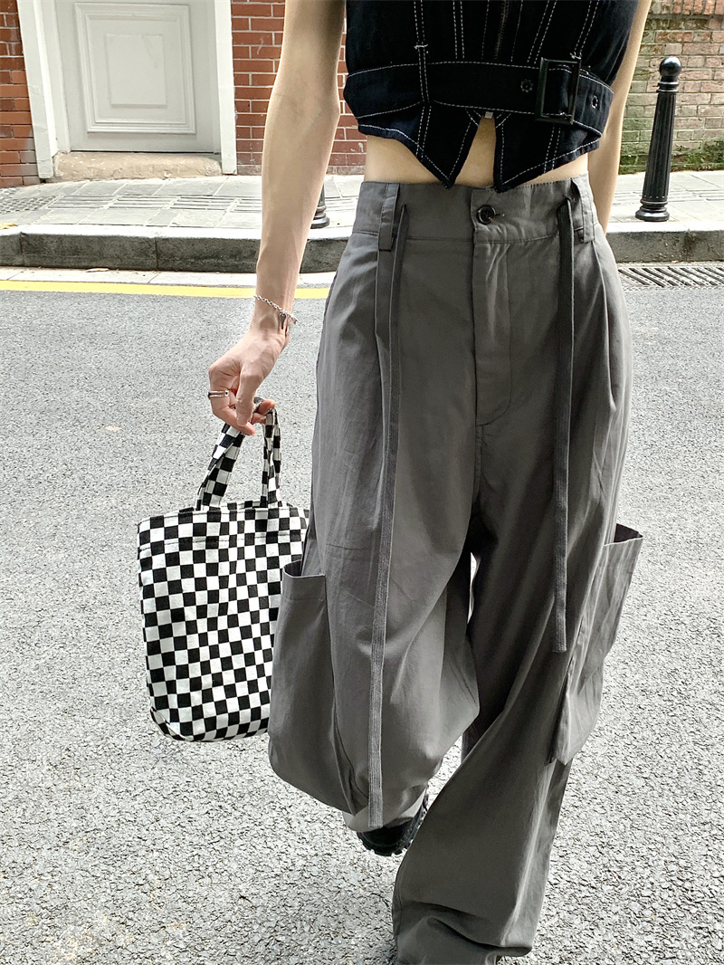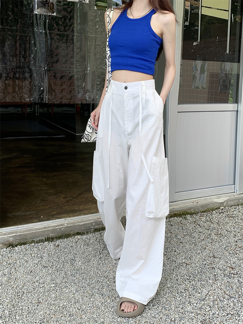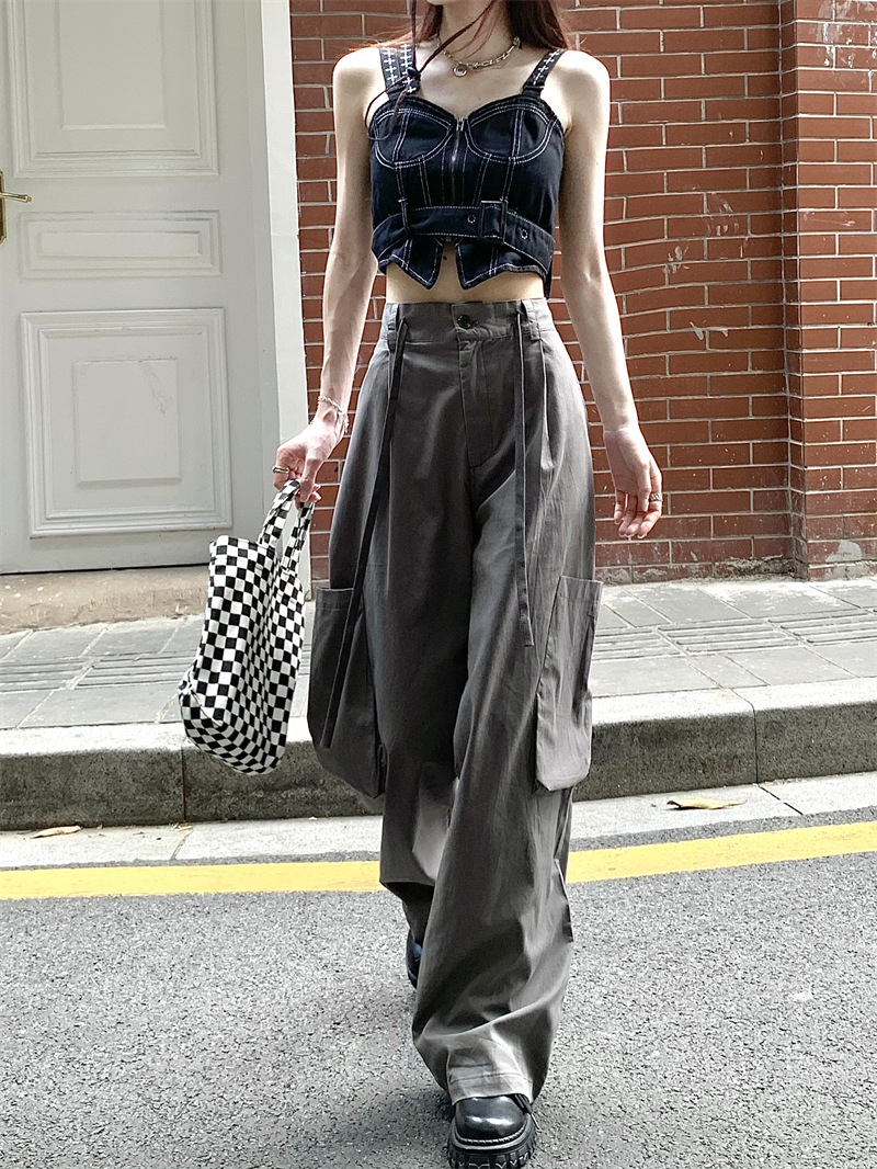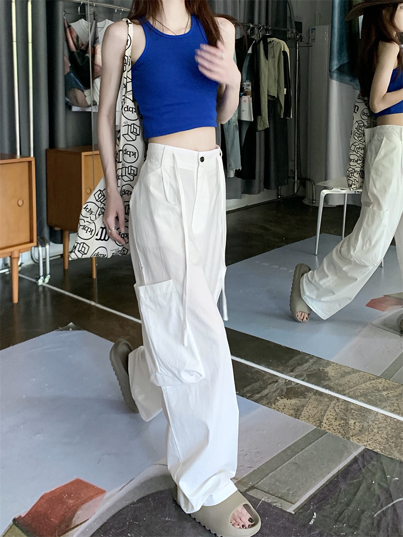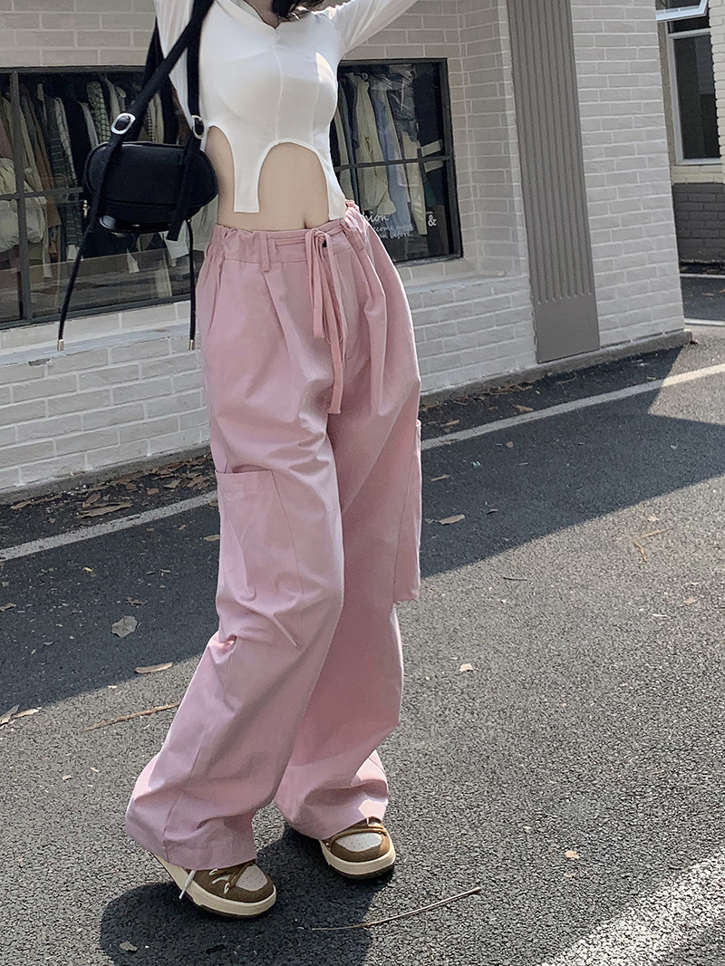 美式甜酷辣妹工装裤女大码休闲长裤夏季薄款高腰宽松阔腿运动裤子