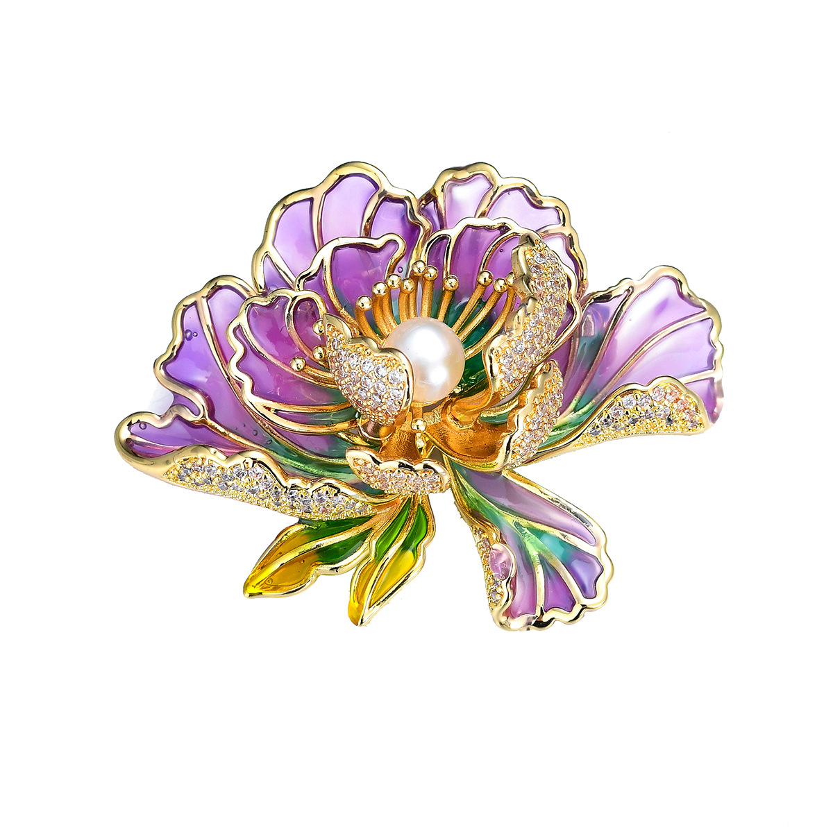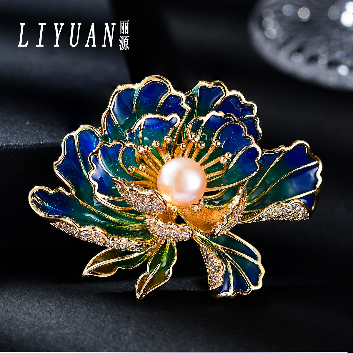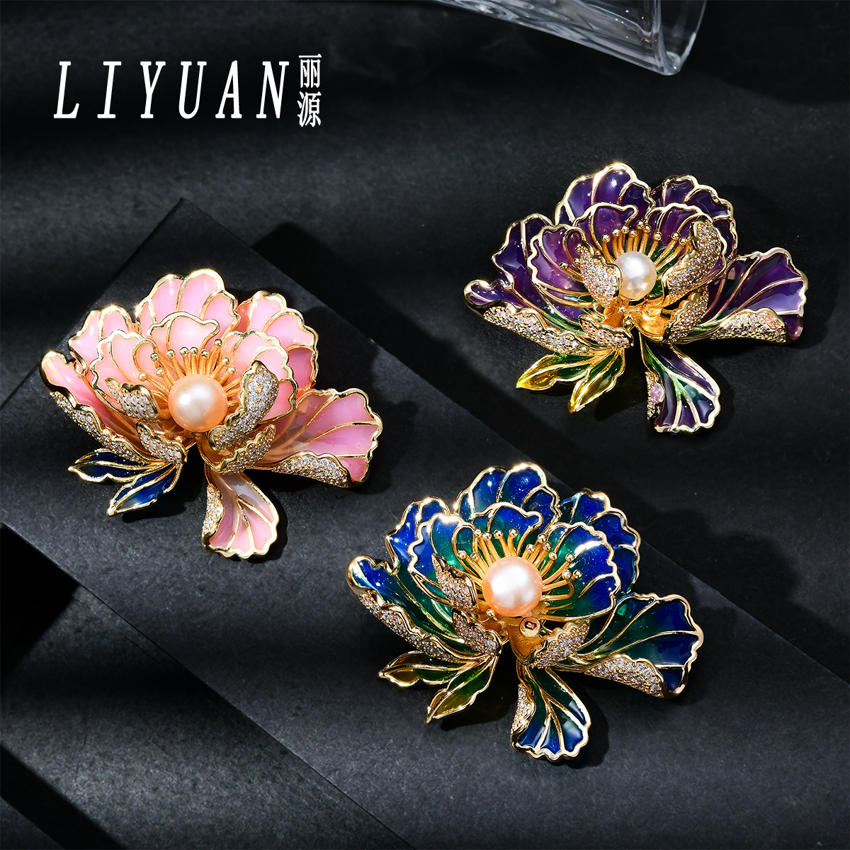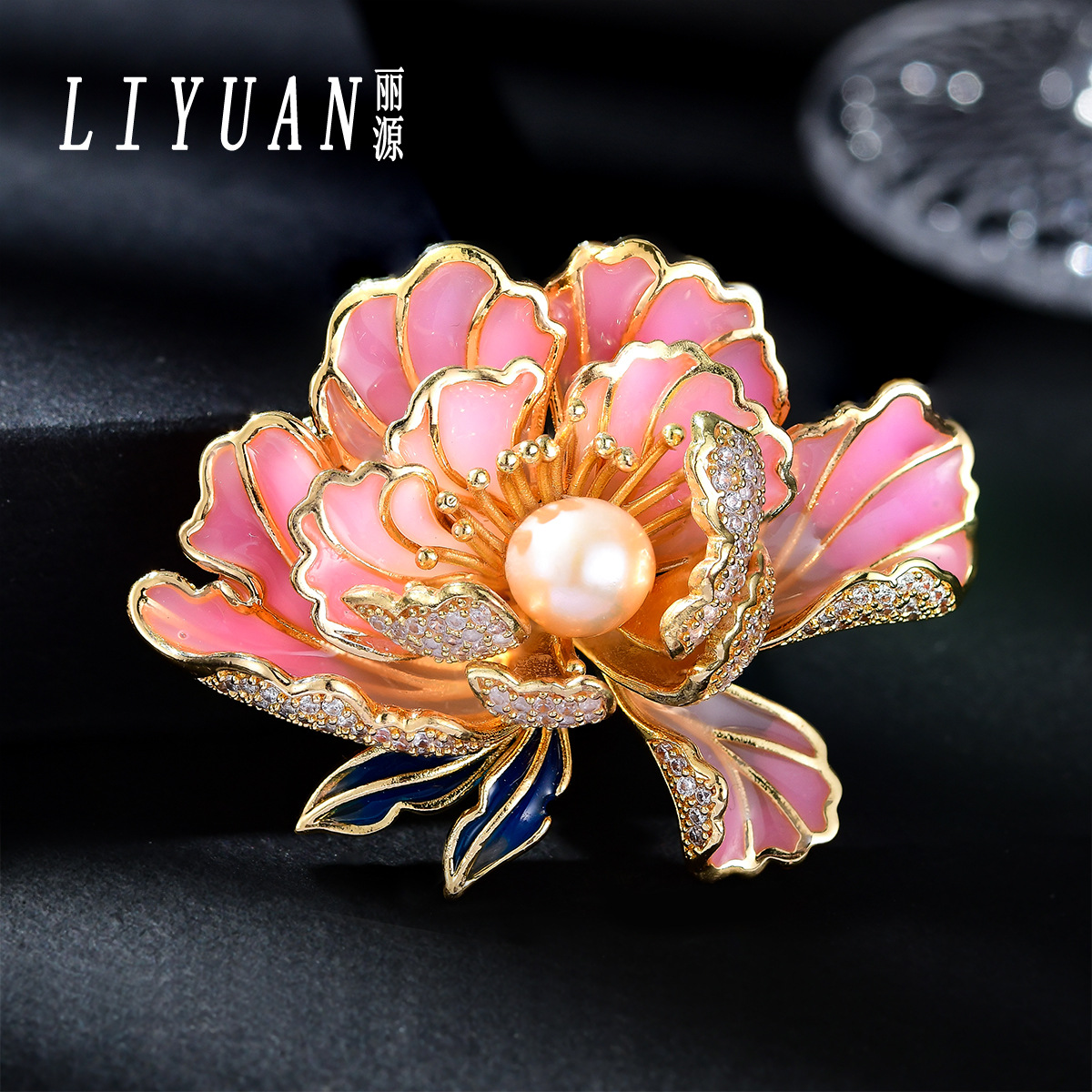 中国风淡水珍珠牡丹花胸针优雅气质百搭汉服旗袍大衣新娘胸花配饰