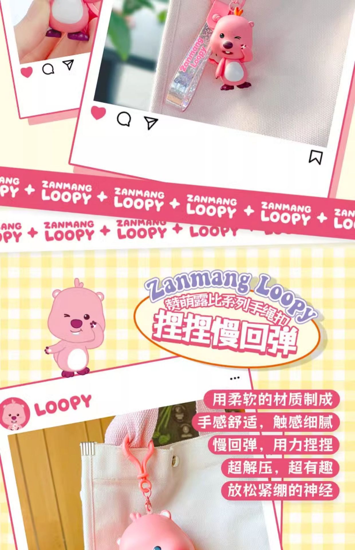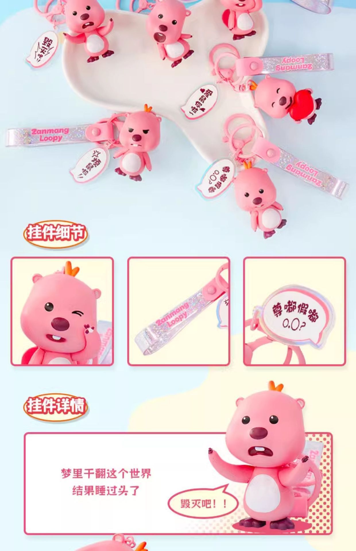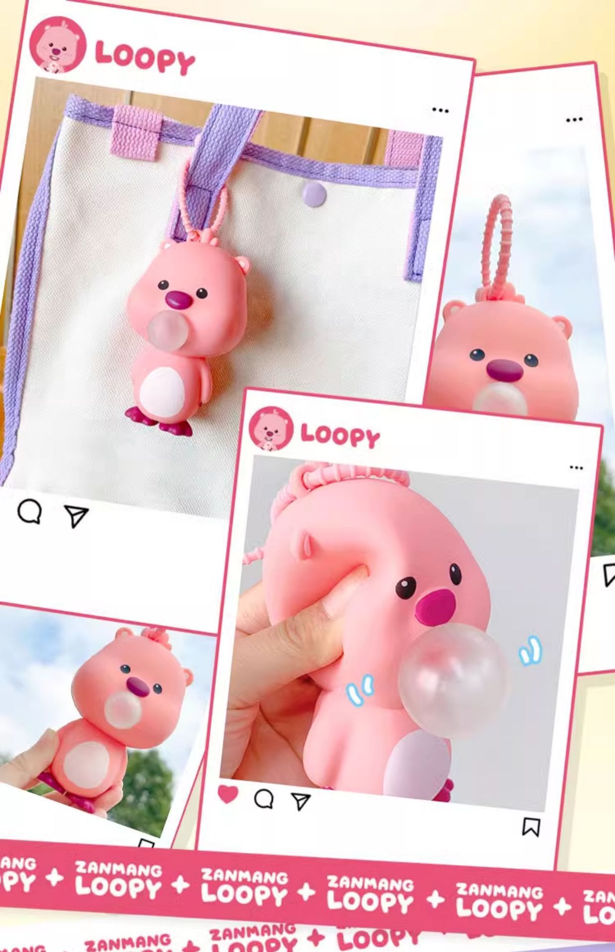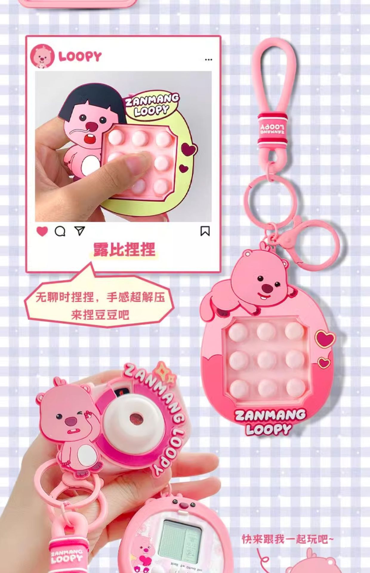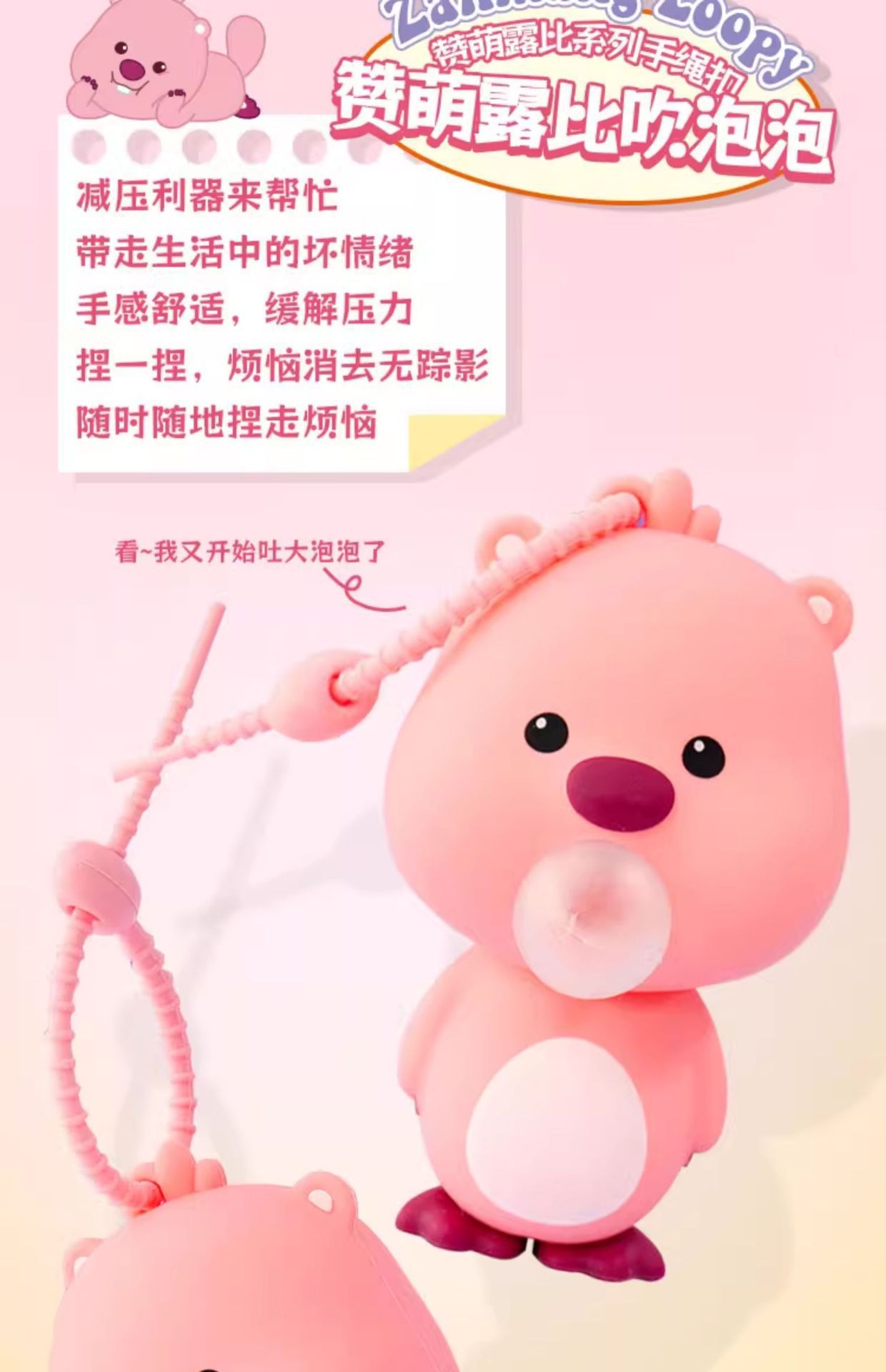 正版授权露比吹泡泡捏捏解压钥匙扣可爱loopy小海狸挂饰包包挂件