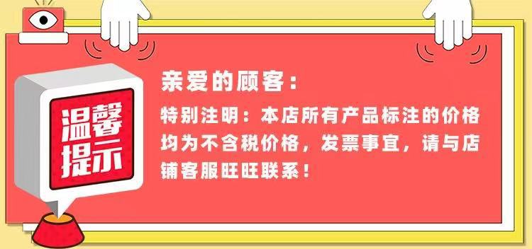 本店所有产品标注的价格均为不含税价格,发票事宜,请与客服联系!开发票需要另加税点,详细请咨询客服