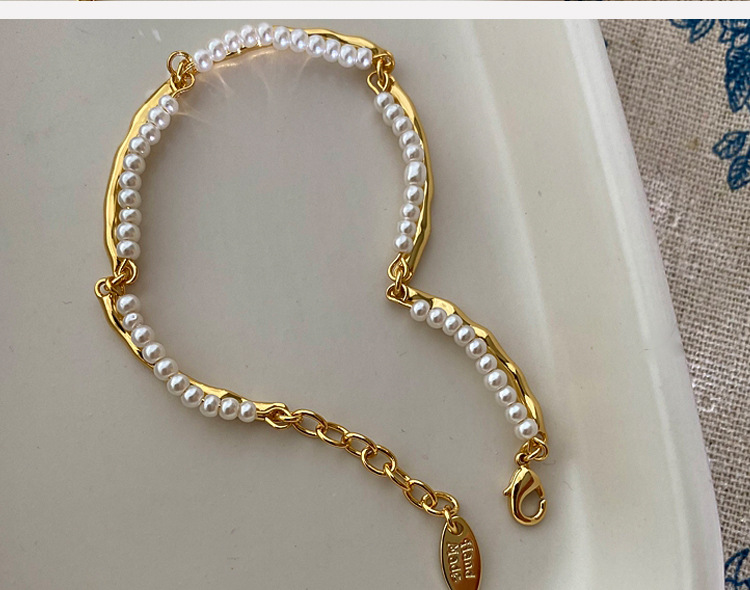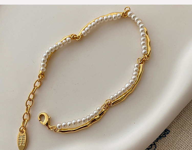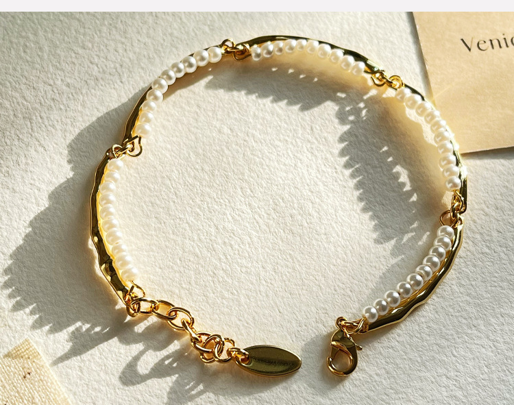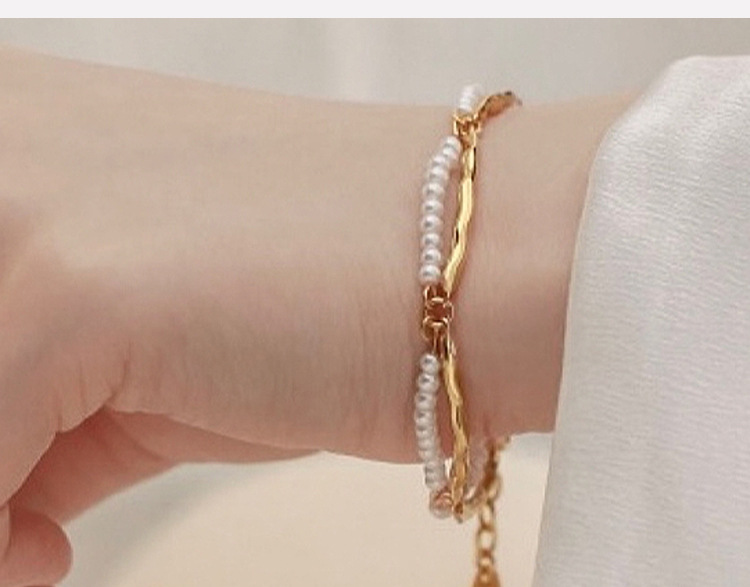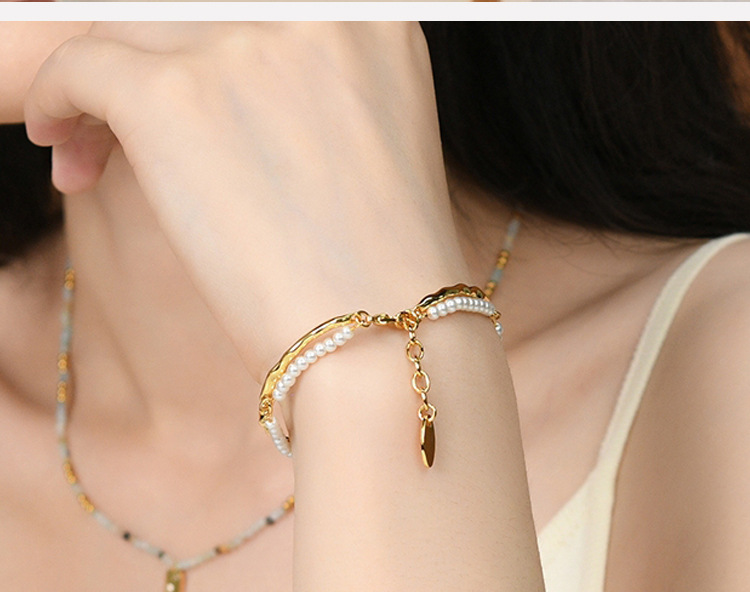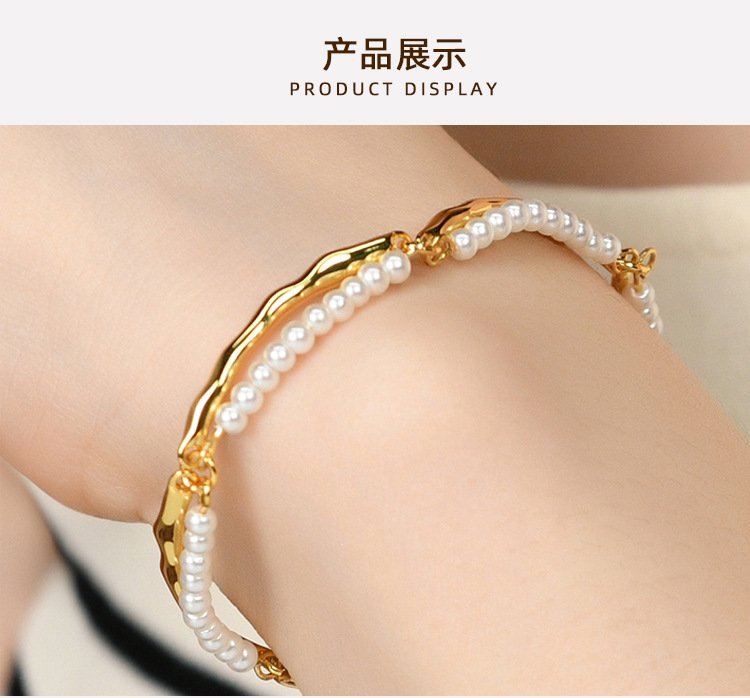 Gelang mutiara lapis ganda gelang lapis baja titanium wanita tumpuk emas asli 18K desain niche tidak pudar gelang mewah modis ringan