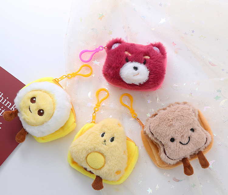Dompet kunci rantai telur, liontin tas kartu rantai kunci, dompet hadiah boneka mesin genggam keju kartun Korea