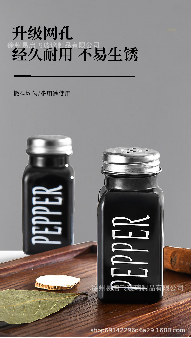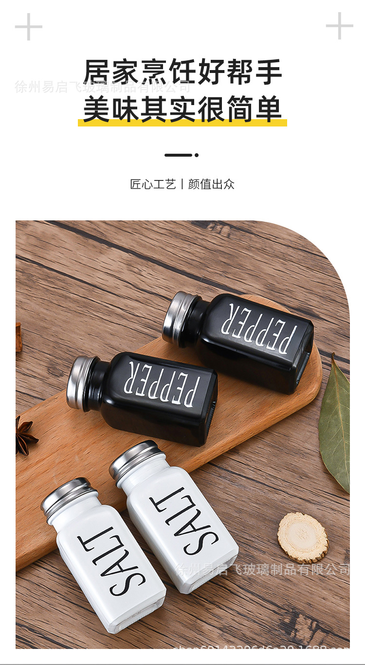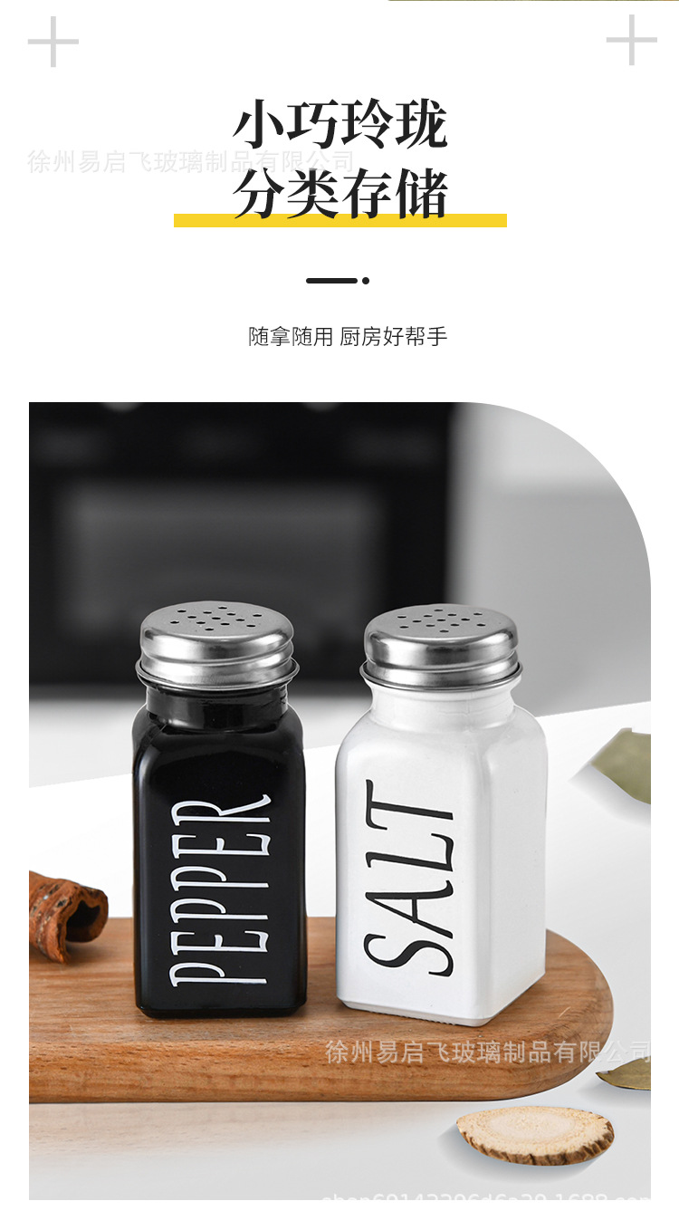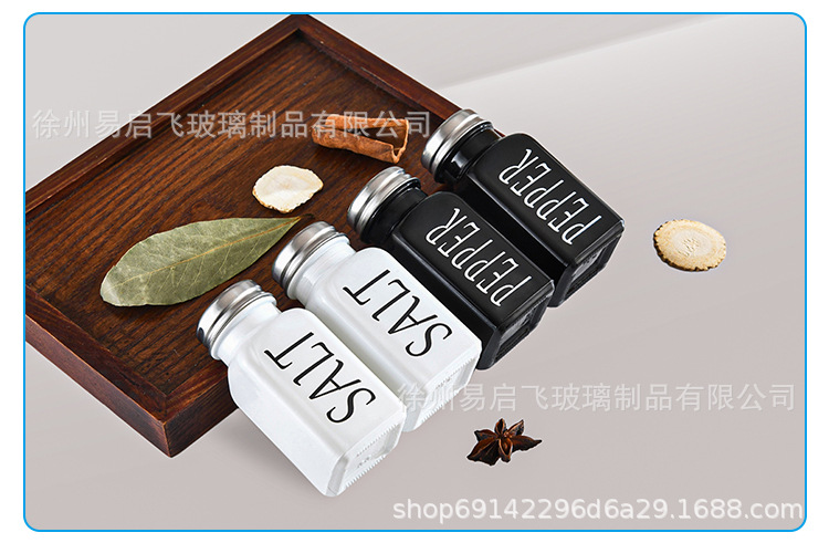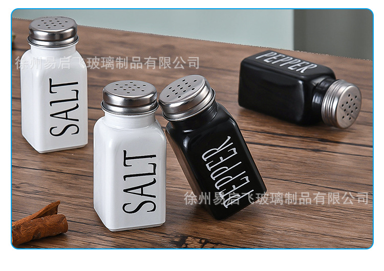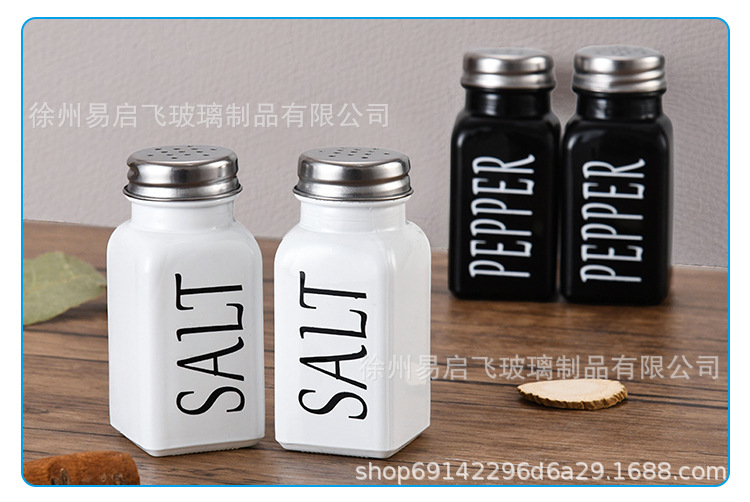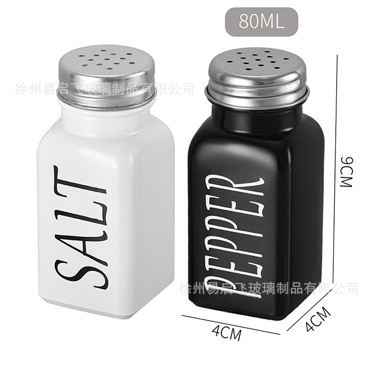 Grosir 80ml setelan hitam dan putih persegi botol bumbu penyebar lada dan botol garam kotak bumbu stoples bumbu kaca lada