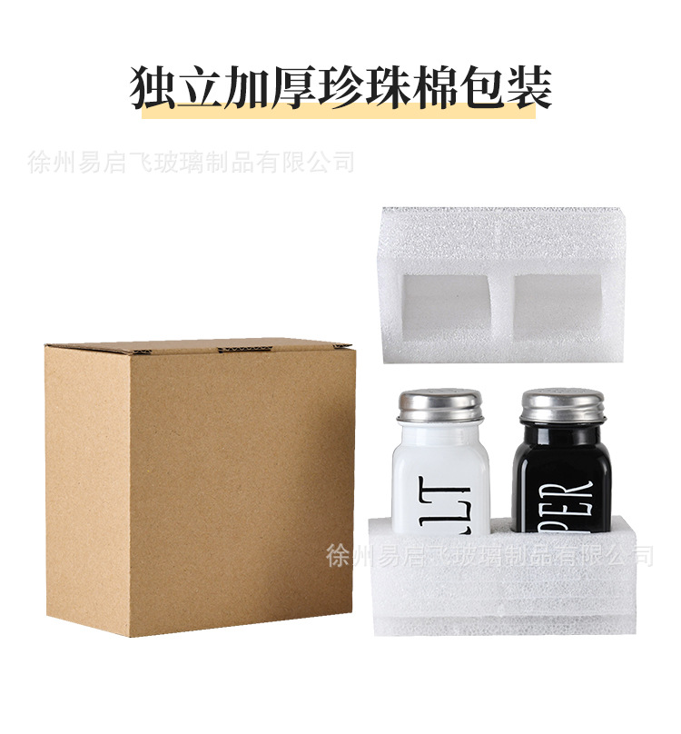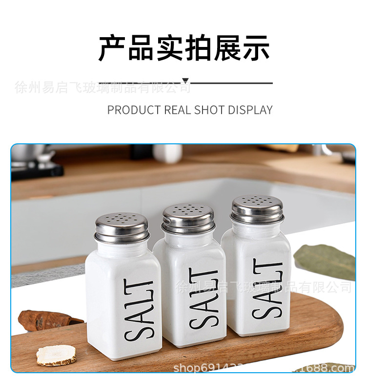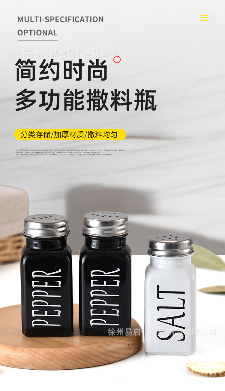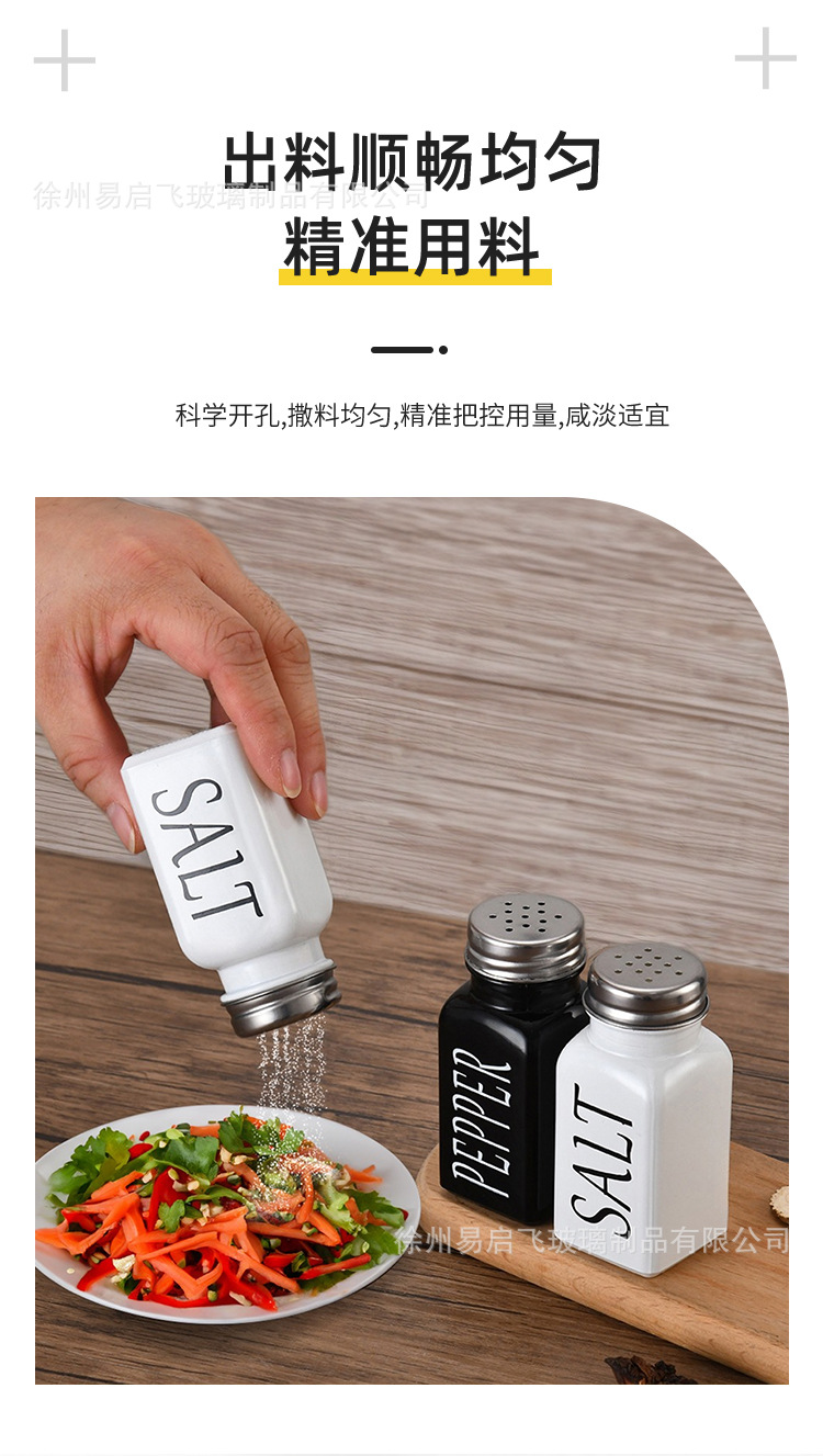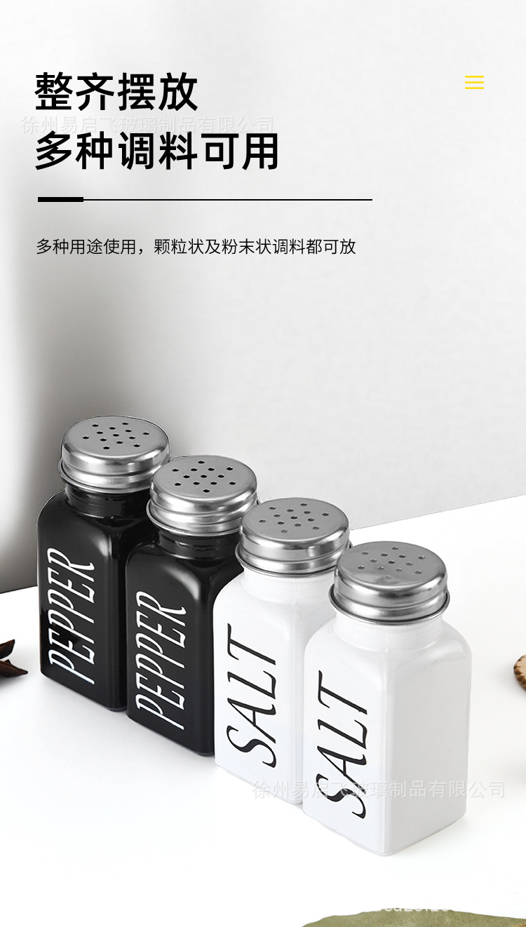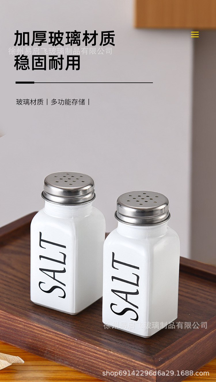 Grosir 80ml setelan hitam dan putih persegi botol bumbu penyebar lada dan botol garam kotak bumbu stoples bumbu kaca lada