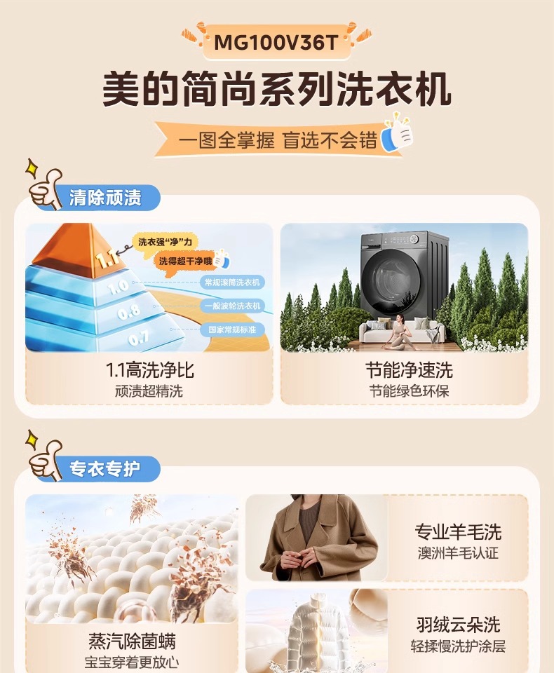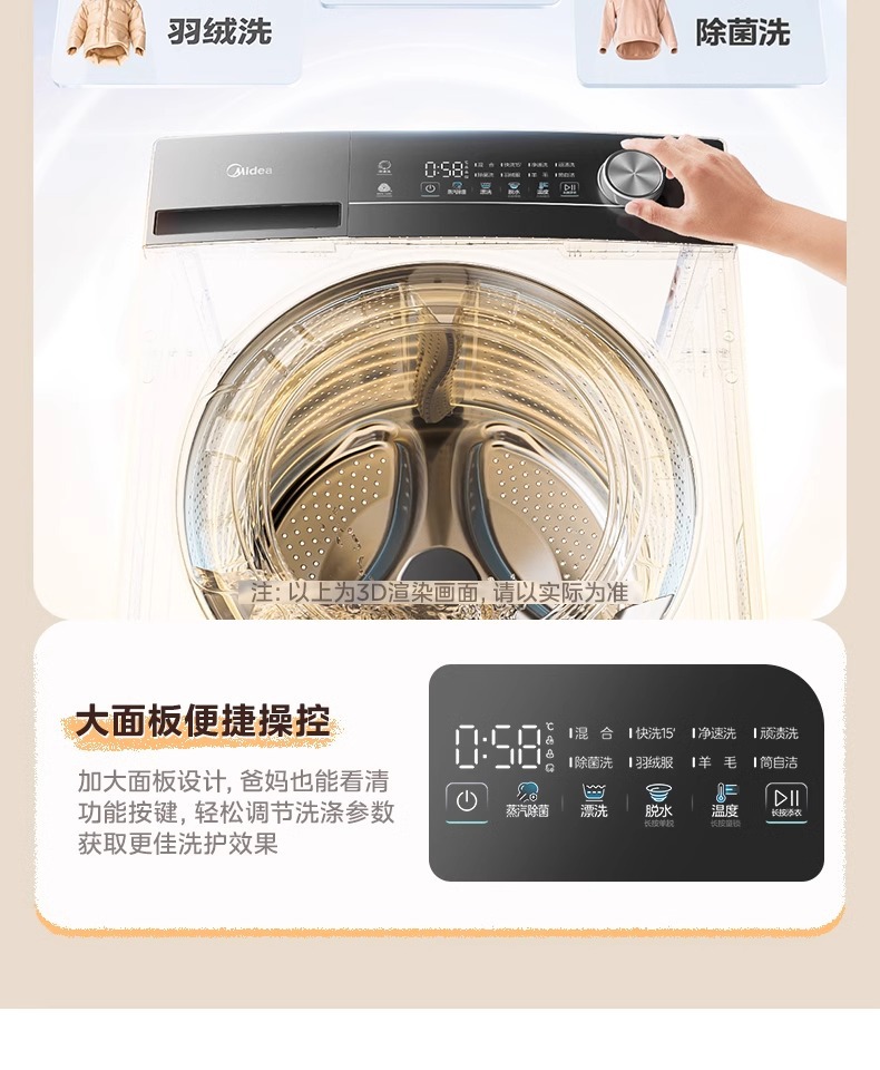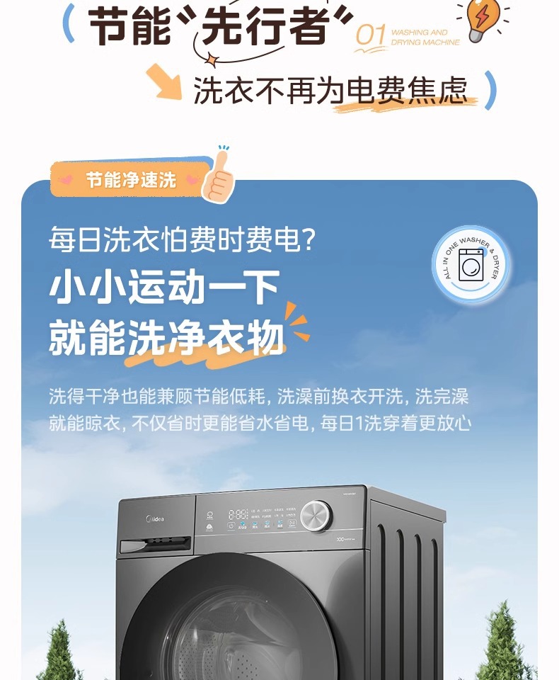 Mesin Cuci 10KG Otomatis Mesin Cuci dan Kering Inverter Rumah Tangga MG100V11FPRO