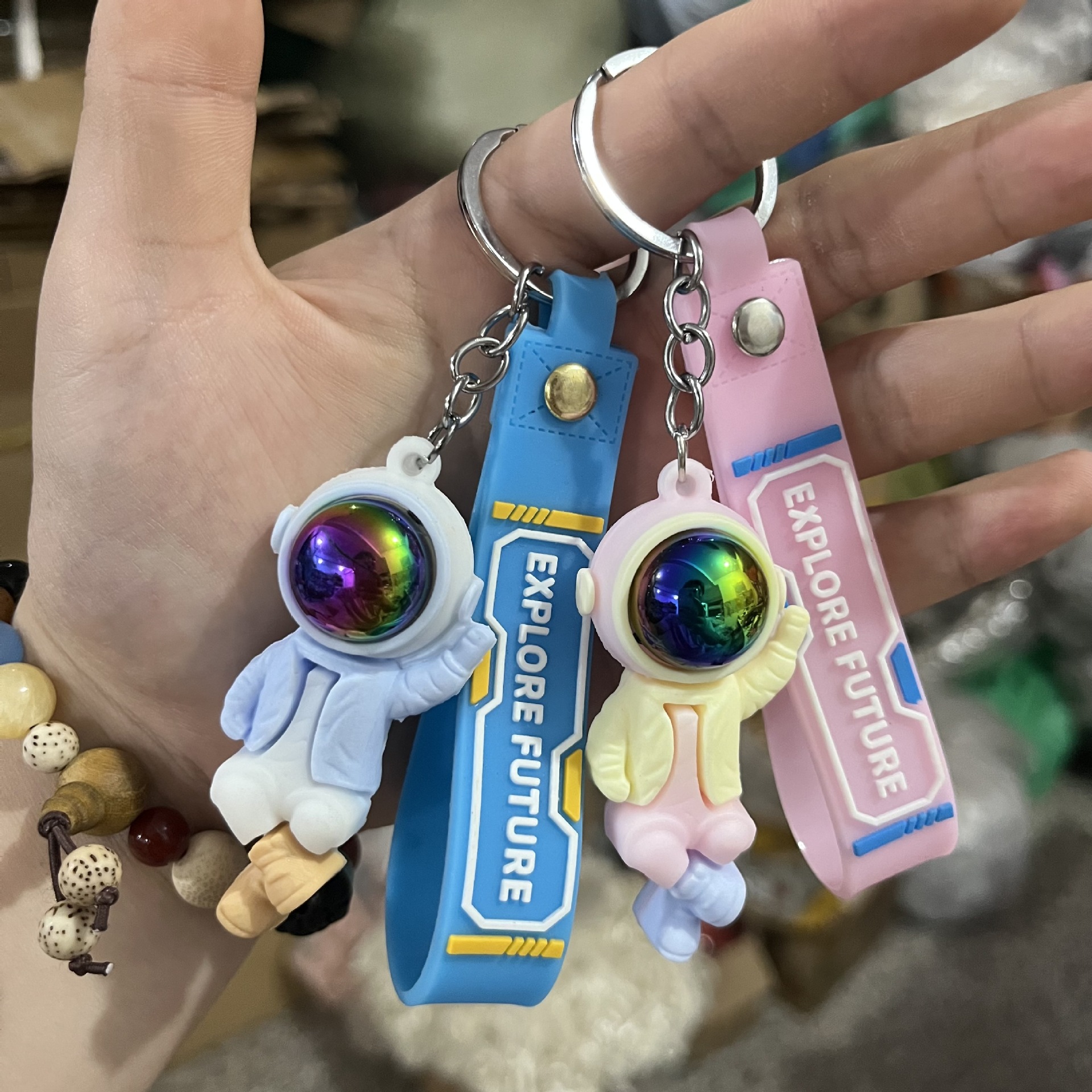 Ornamen tas selempang pasangan, gantungan kunci liontin lucu boneka warna-warni tas mobil hadiah kecil