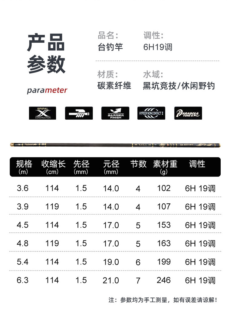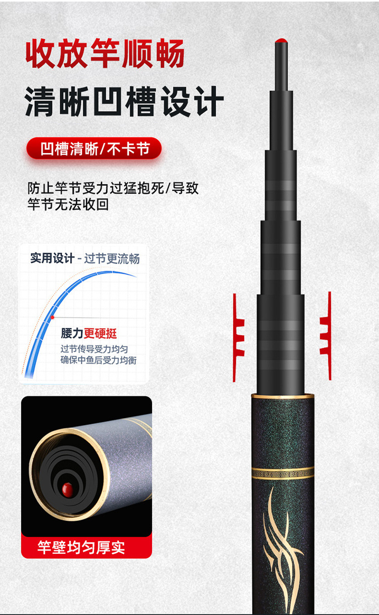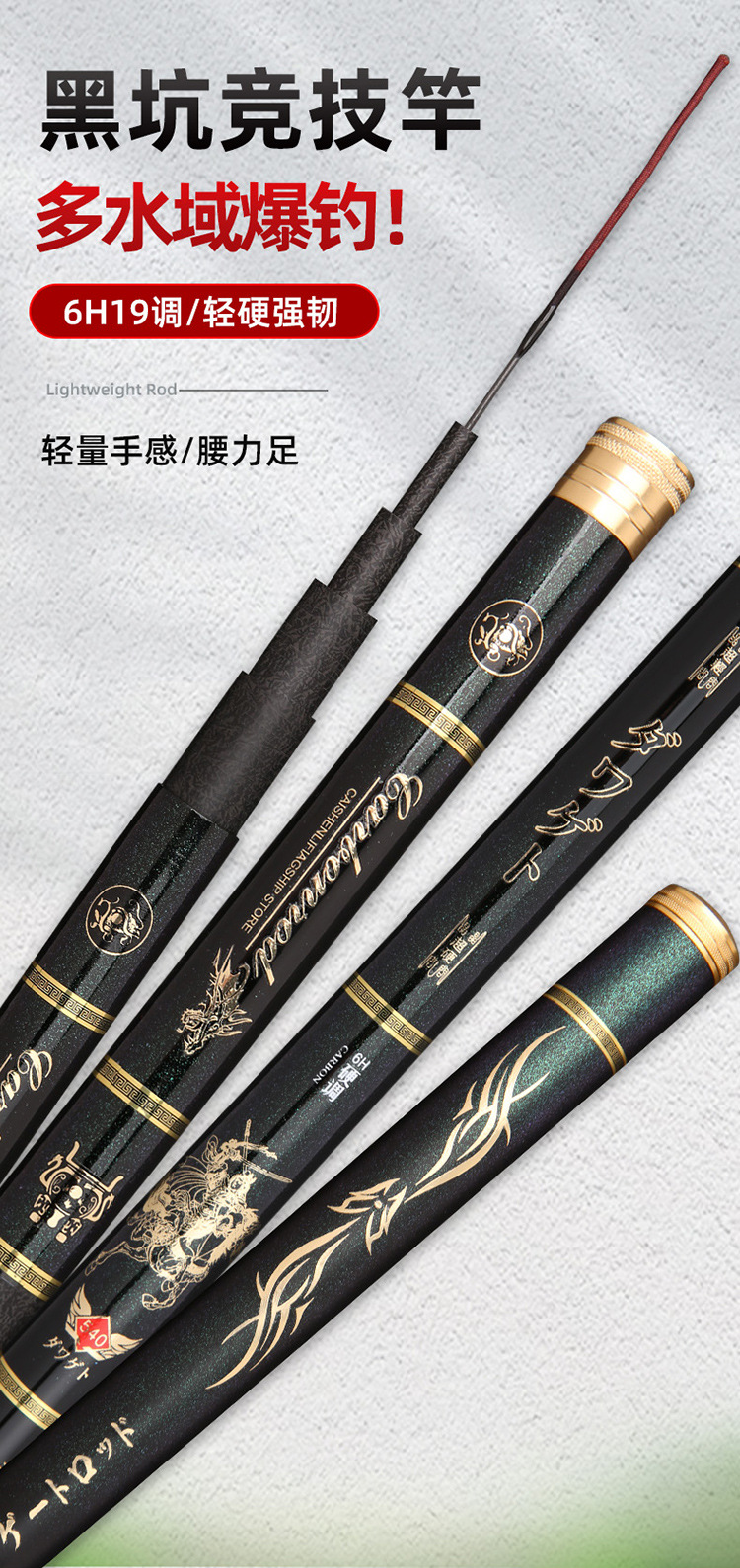 Tongkat pancing Jepang, 19 dapat disesuaikan 6h karbon super keras hitam pit bagian panjang tongkat tangan 5.4 M 6.3 m ikan mas