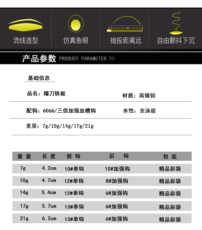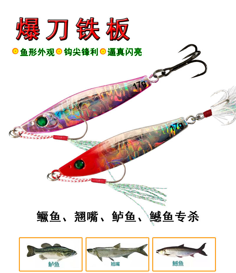 Pisau ikan pelat besi tembakan panjang, umpan logam palsu perlengkapan memancing piring besi Luya payet piring besi umpan grosir