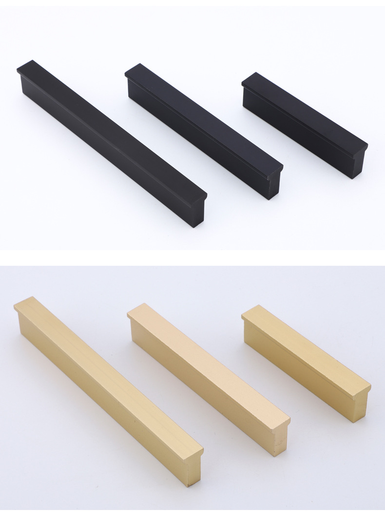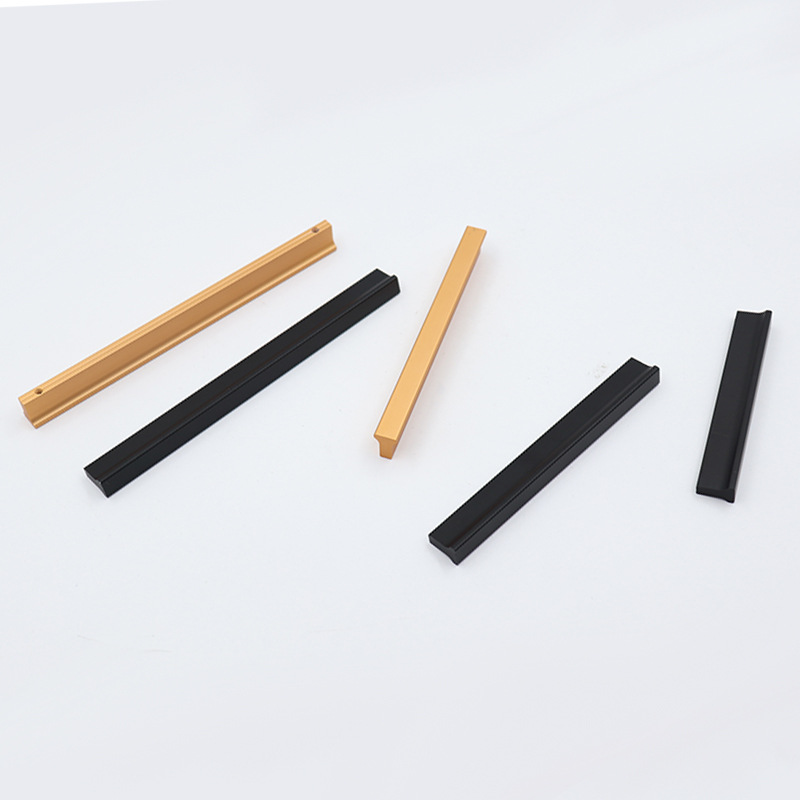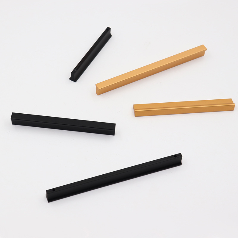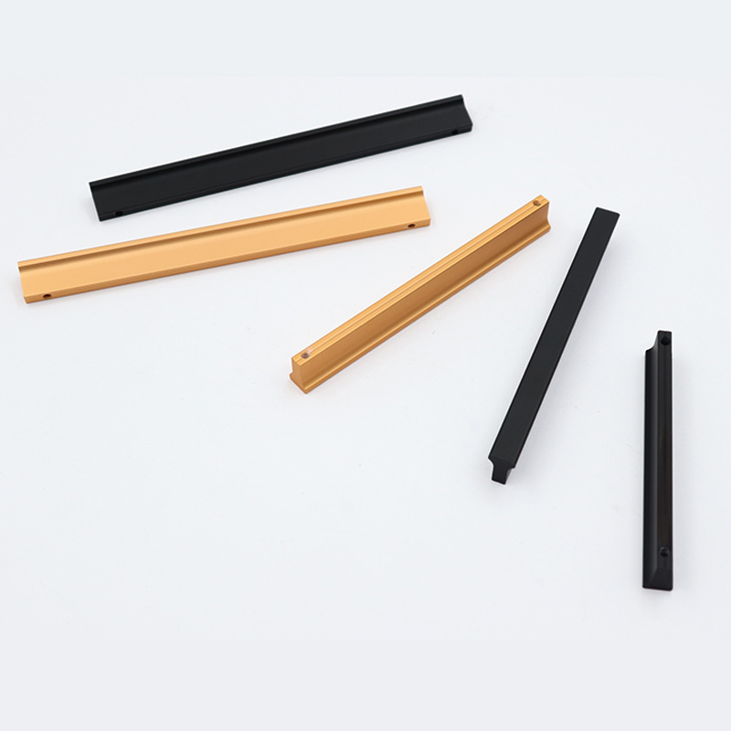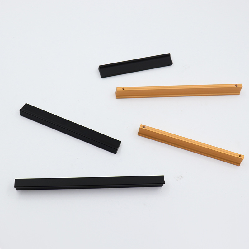 Gagang lemari pintu kabinet model T modern dari bahan aluminium alloy warna emas, gagang warna tembaga hitam, produsen grosir