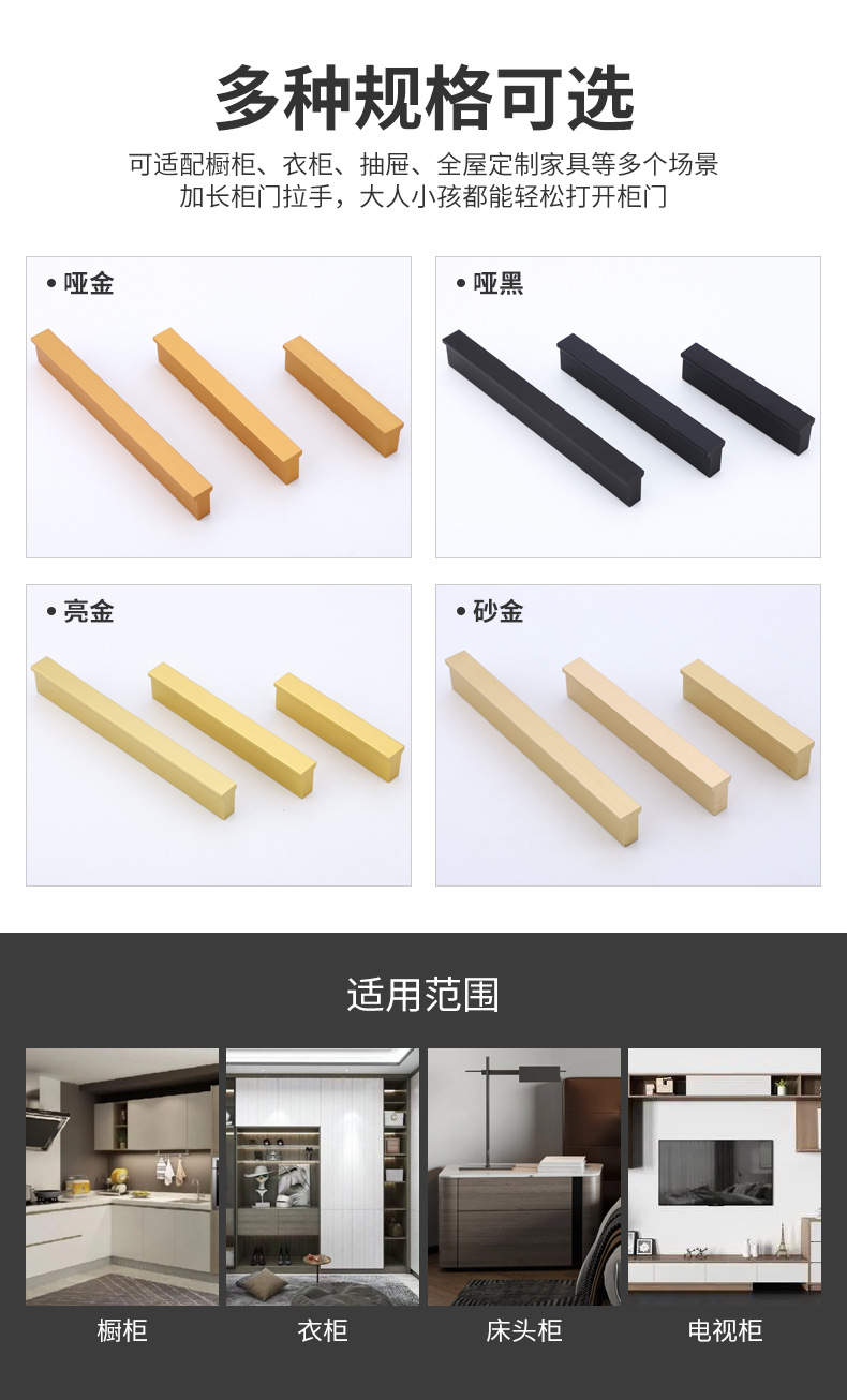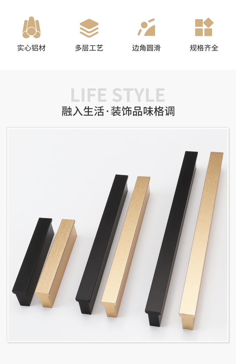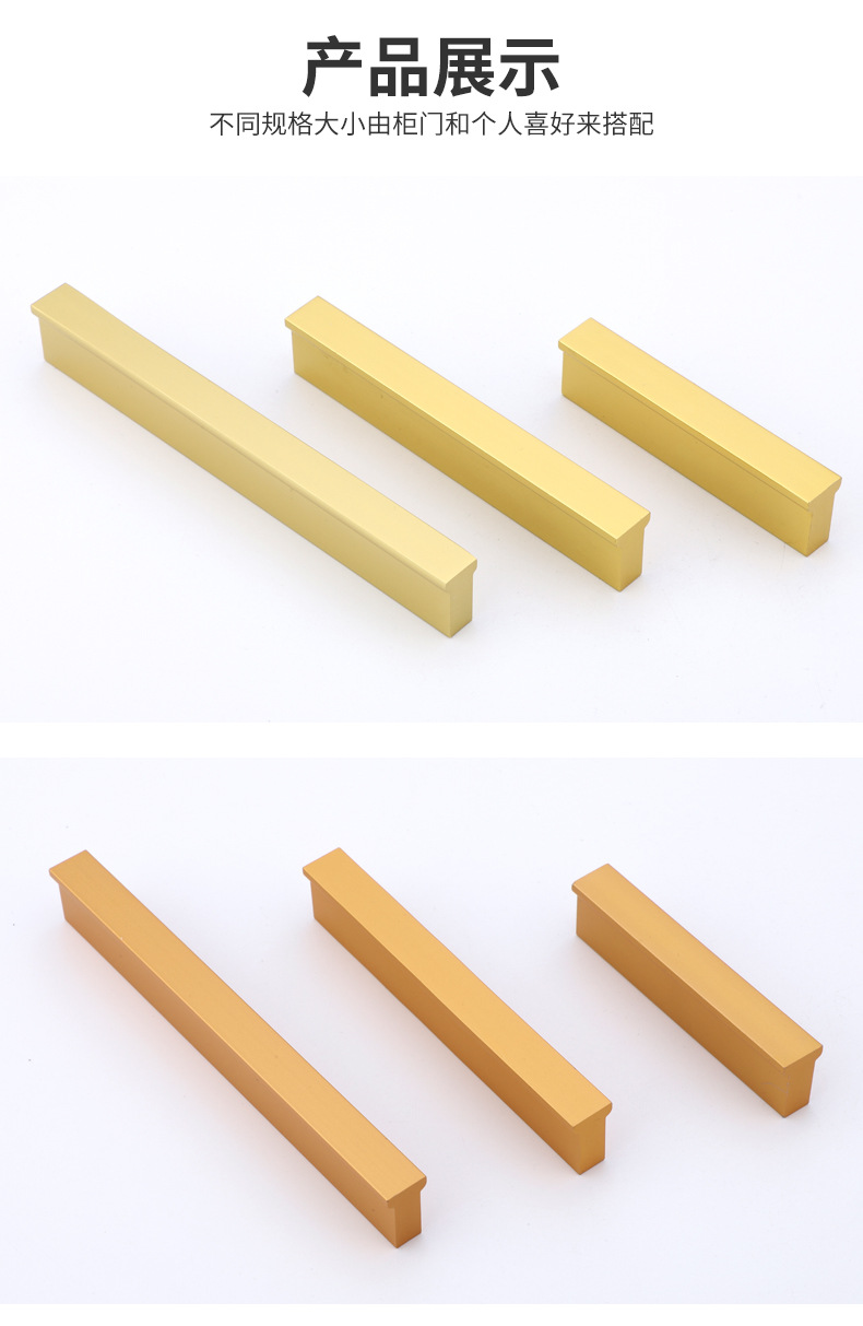 Gagang lemari pintu kabinet model T modern dari bahan aluminium alloy warna emas, gagang warna tembaga hitam, produsen grosir