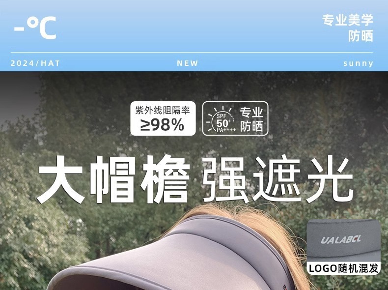 Topi matahari wanita, tutup kepala kosong pinggiran lebar untuk olahraga luar ruangan, perlindungan UV musim panas