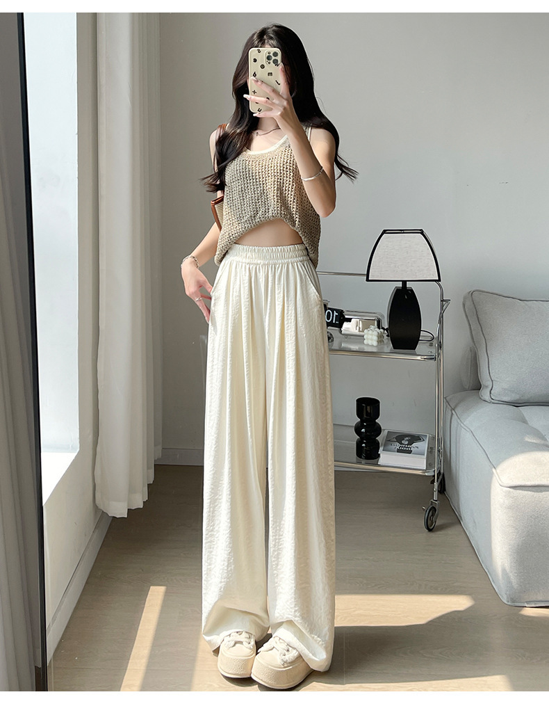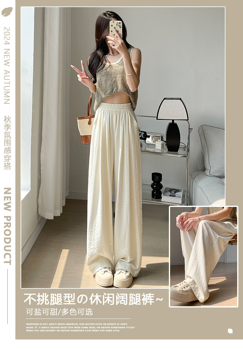 Celana lebar Milkful Yamamoto untuk wanita, koleksi awal musim gugur 2025, pinggang tinggi, bahan asetat, model longgar, gaya santai, tipis, dan panjang.