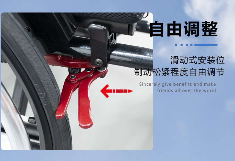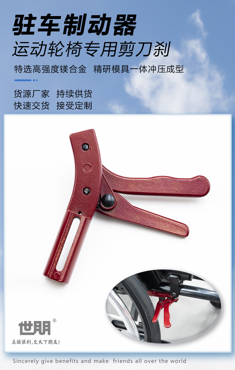Aksesoris kursi roda olahraga: rem kursi roda berbahan aluminium alloy, rem parkir terintegrasi, hasil stamping.