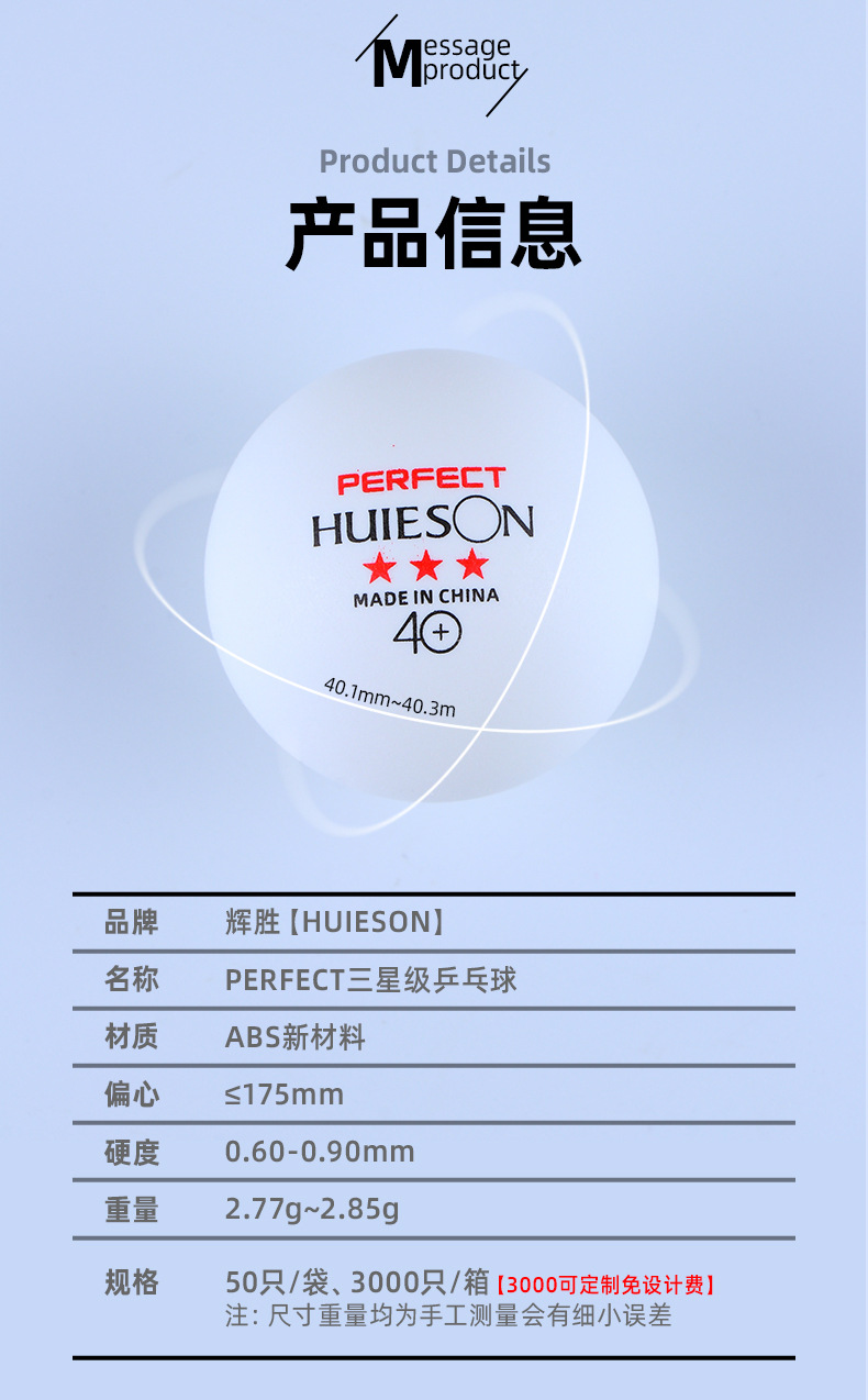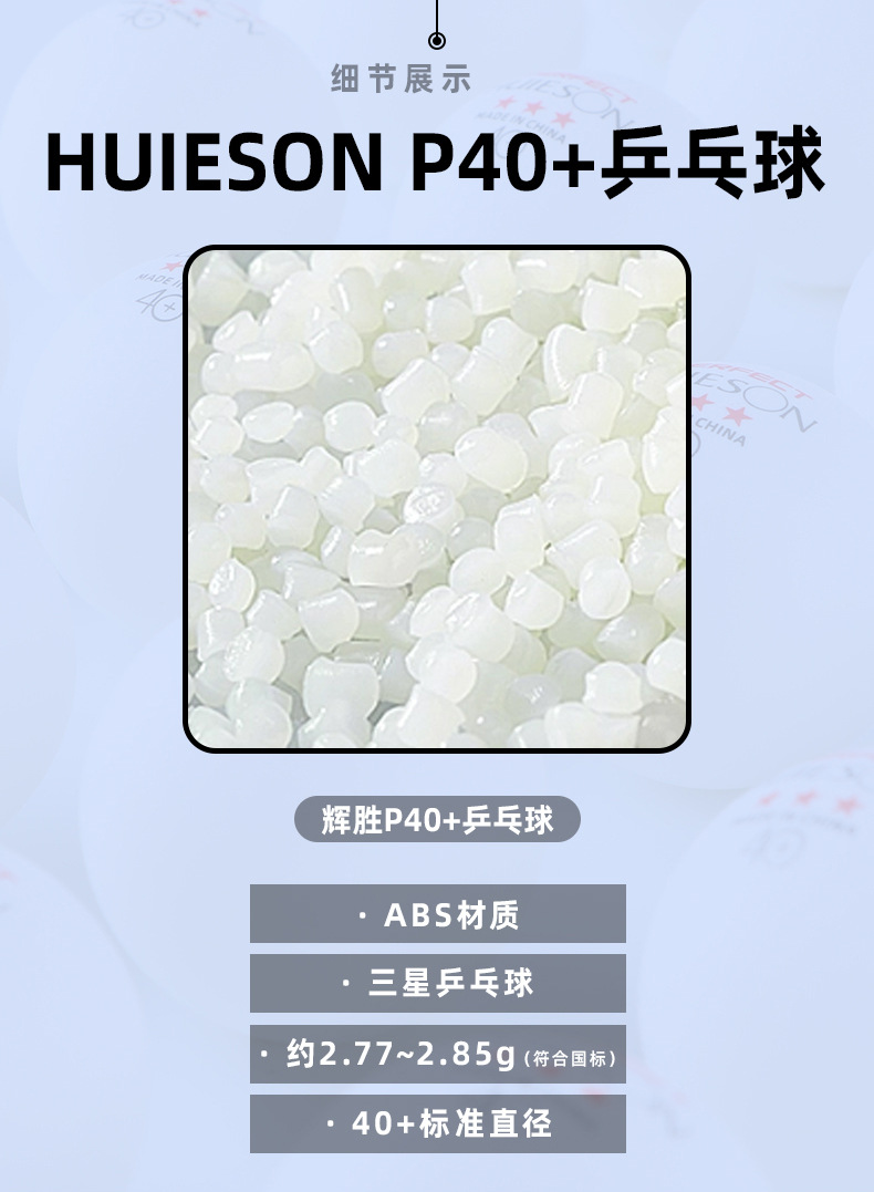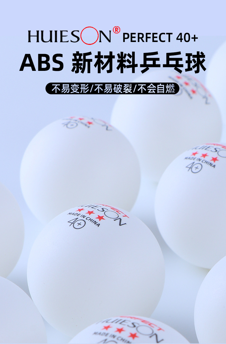 Huisheng ABS tenis meja tiga bintang sempurna, bahan baru tenis meja latihan putih kompetisi tenis meja pabrik sekolah