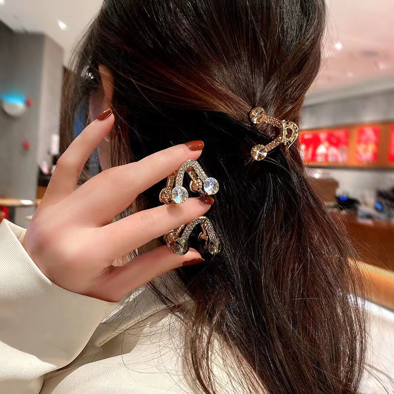 2023 baru segitiga geometris wanita berlian imitasi kepala belakang penjepit poni kecil dahi gaya Barat klip tinggi meningkat