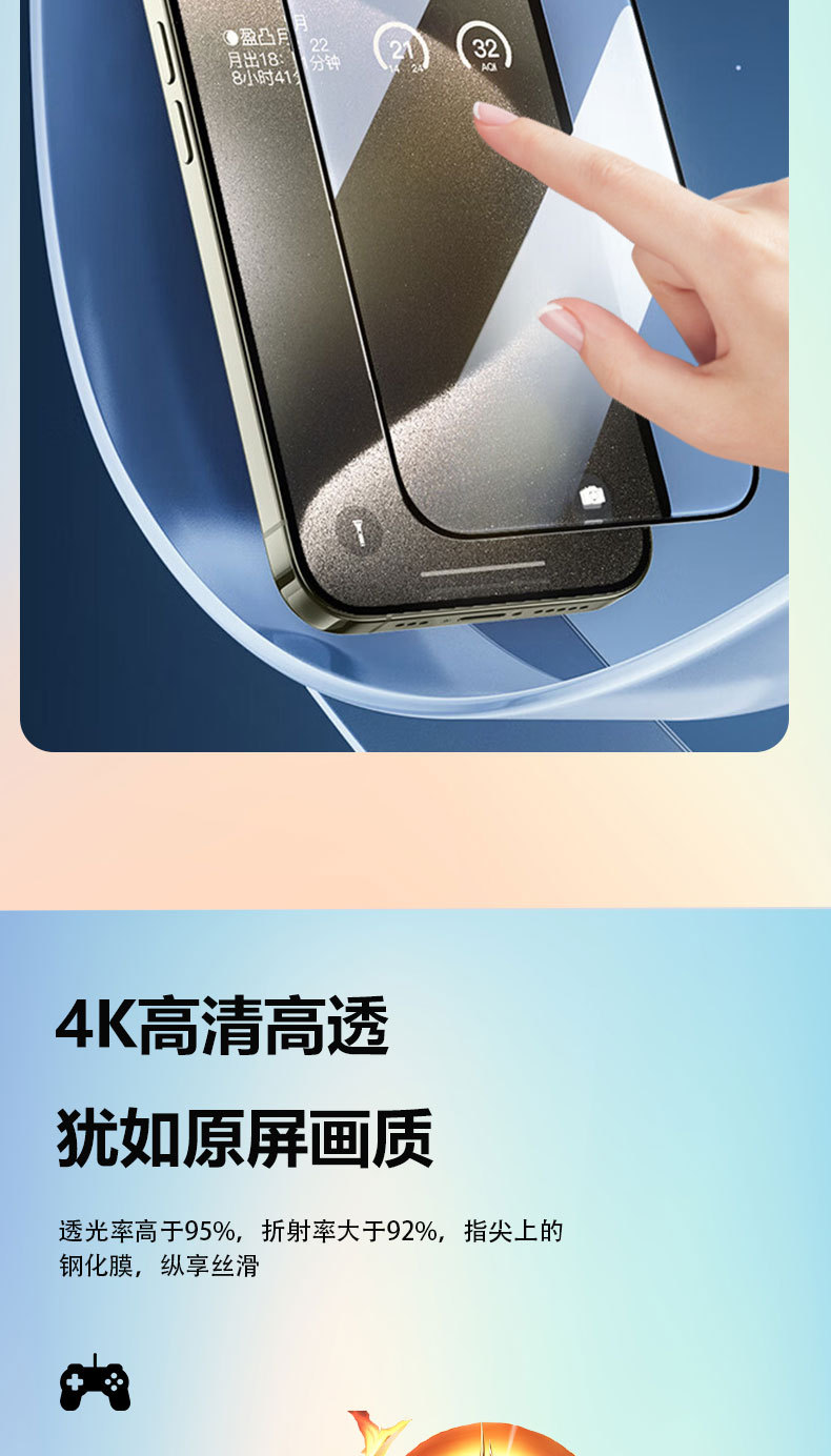 Pelindung layar ponsel Apple baru, kaca elektroplating full-screen, anti-ledakan dan anti-jatuh, film tempered untuk iPhoen16 semua seri