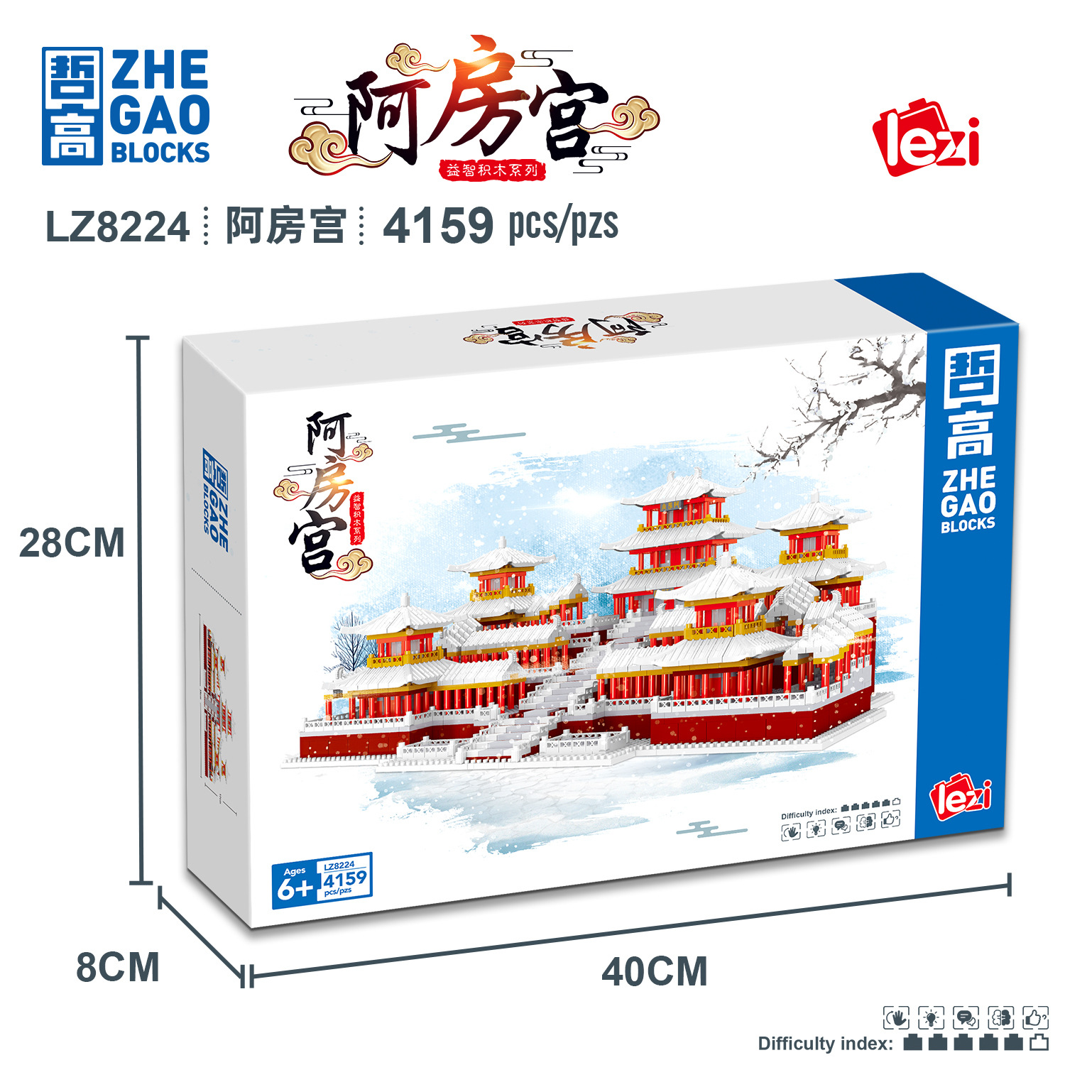 Zhegao hadiah mainan rakitan blok bangunan anak-anak anak laki-laki dan perempuan 8224 Taman Suzhou Afang istana adegan salju menyenangkan