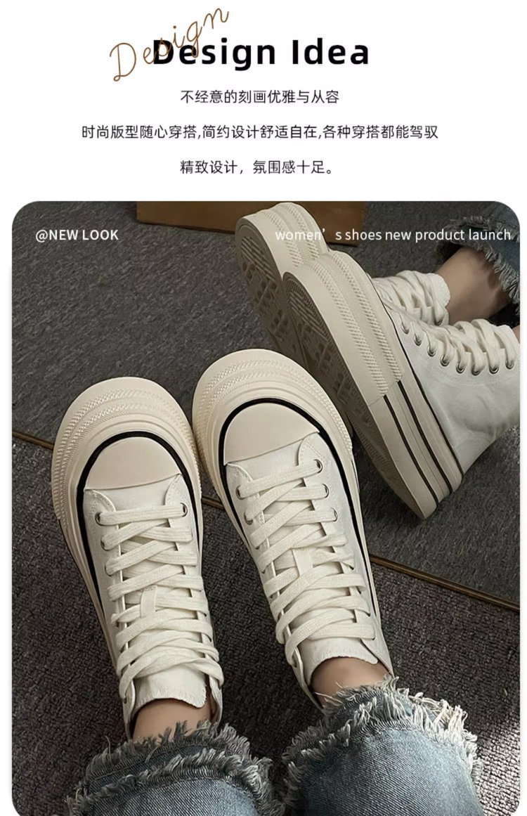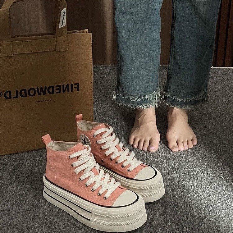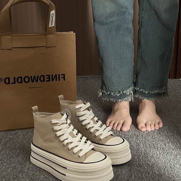 爆款高帮帆布鞋女2025年春季新款韩版百搭厚底增高运动休闲板鞋潮