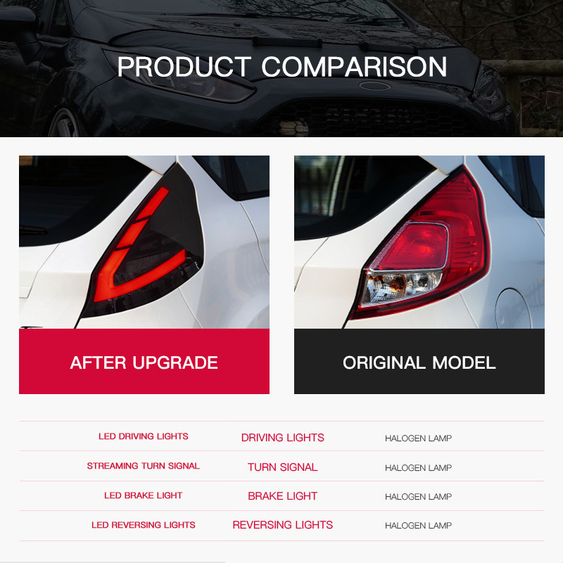 Berlaku untuk 09-15 Ford Fiesta lampu belakang, pemasangan lampu LED modifikasi lampu rem lampu berjalan lampu sein air