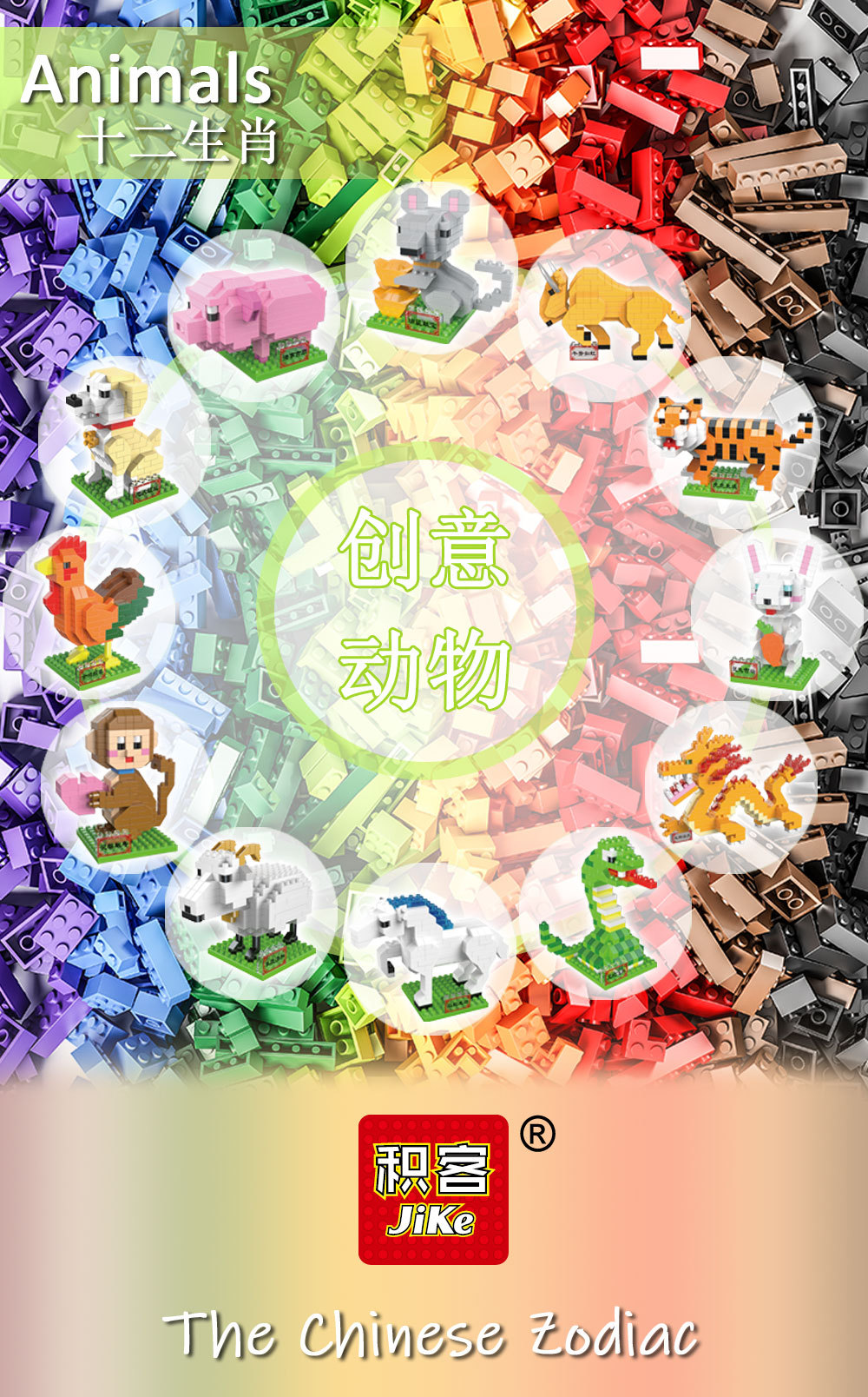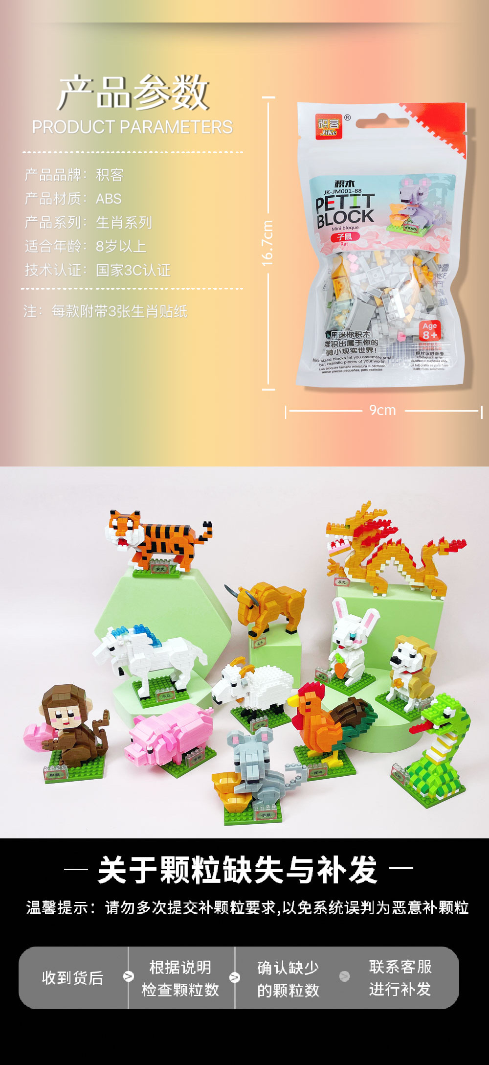 Jike blok bangunan teka-teki partikel kecil berlian mikro zodiak hewan ekspor zodiak Cina Tikus Ox harimau kelinci naga