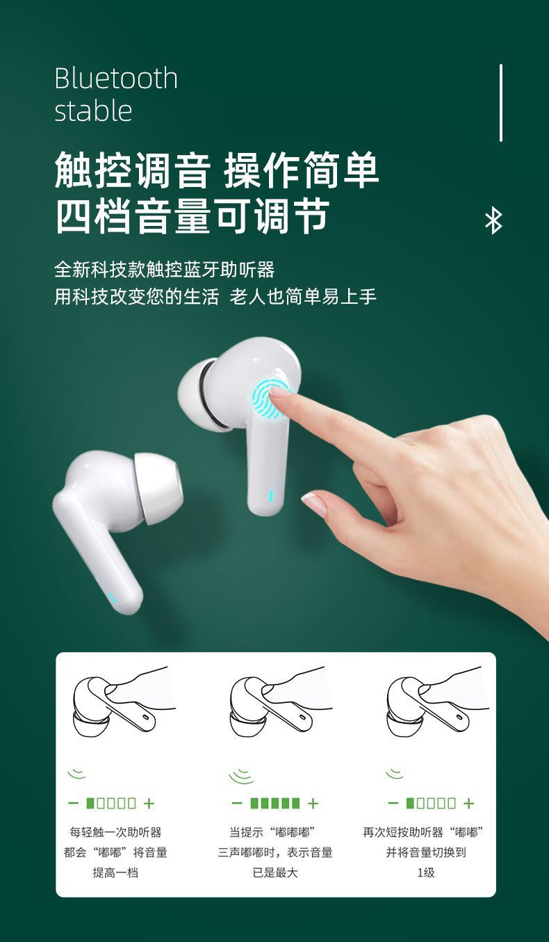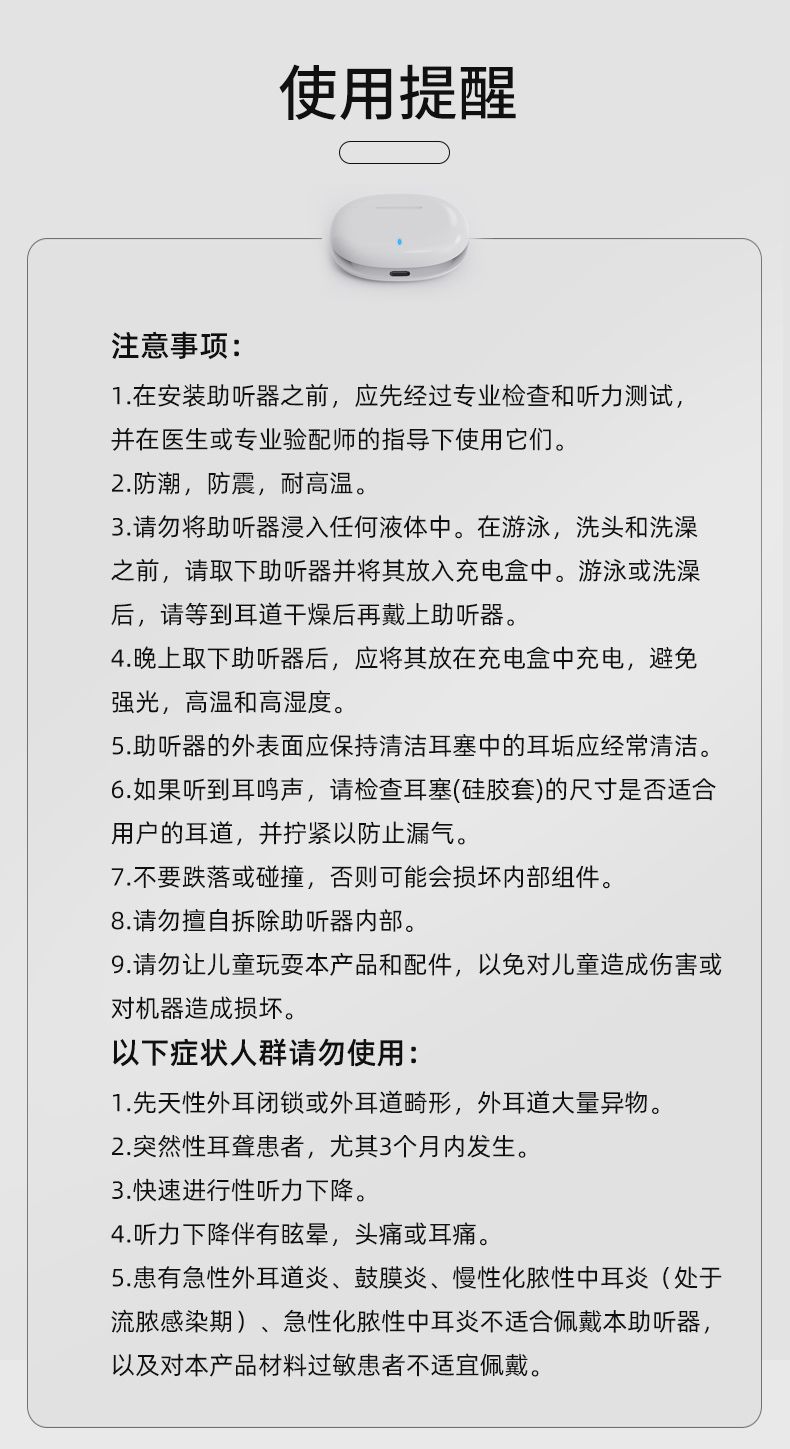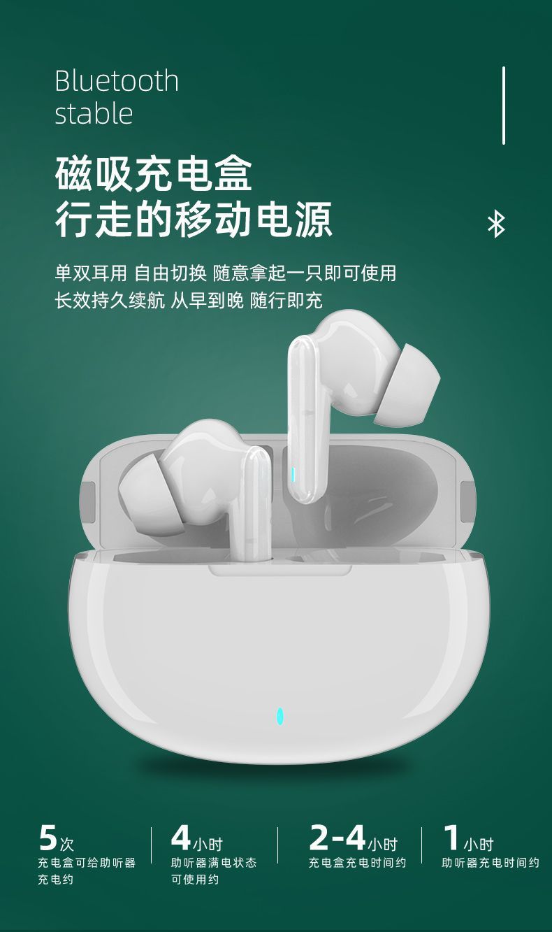 5、产品规格:助听器2个、便携式移动充电盒1个