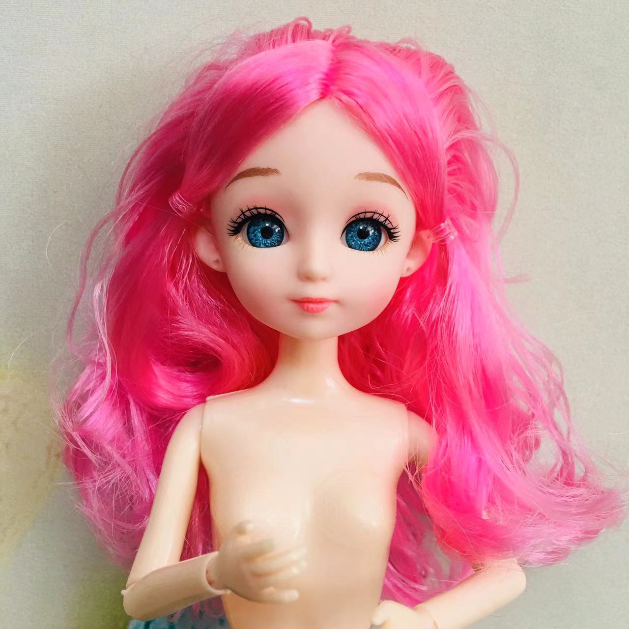 Boneka BJD rambut keriting putri duyung 30cm, tubuh telanjang, bisa diganti pakaian, riasan, dan aksesoris boneka loli 11 sendi.