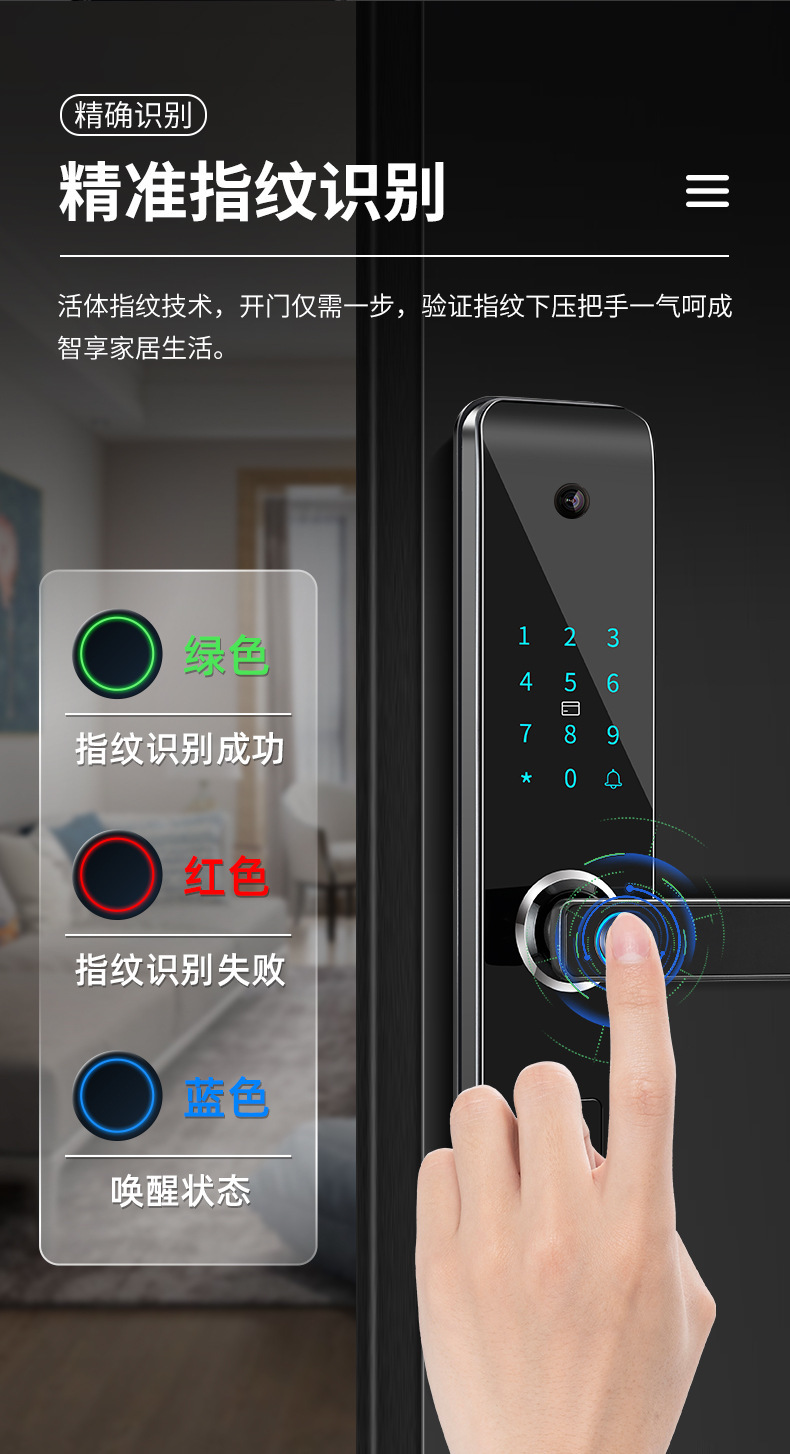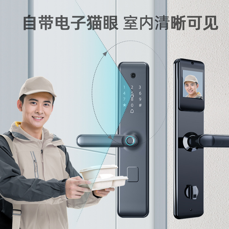 Kunci pintu pintar, kunci pintu pintar NFC sidik jari, kunci elektronik rumah tangga anti Maling, kunci pintu mata kucing sidik jari