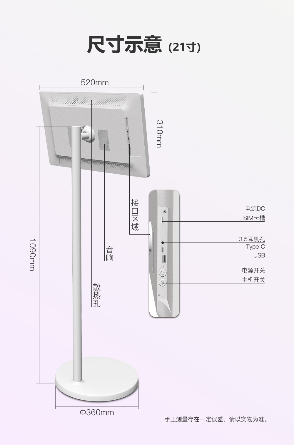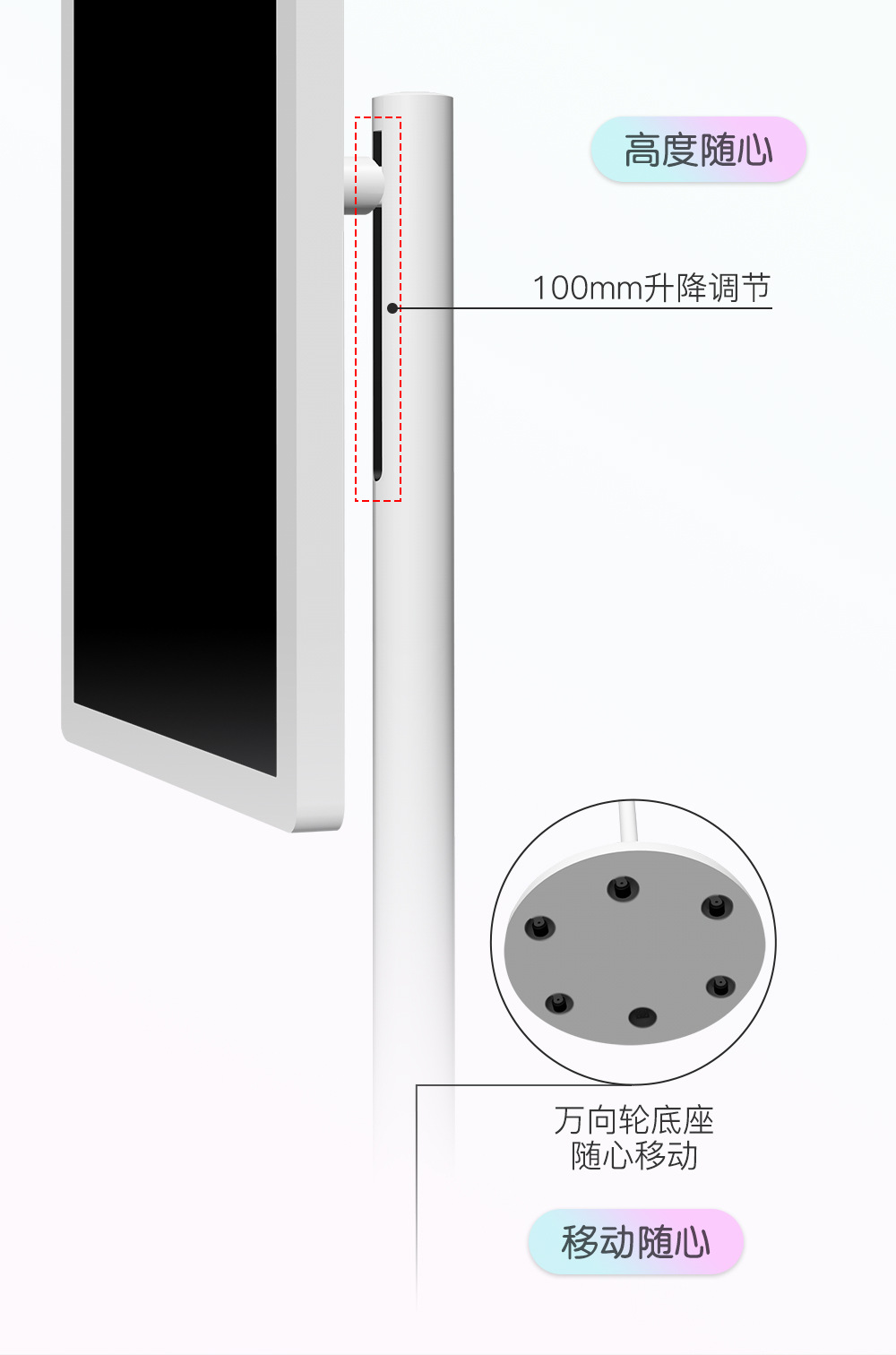 主机、升降杆、移动底座、安装工具、说明书、适配器