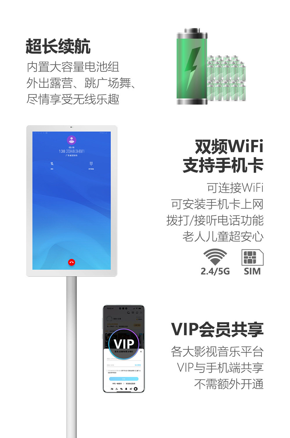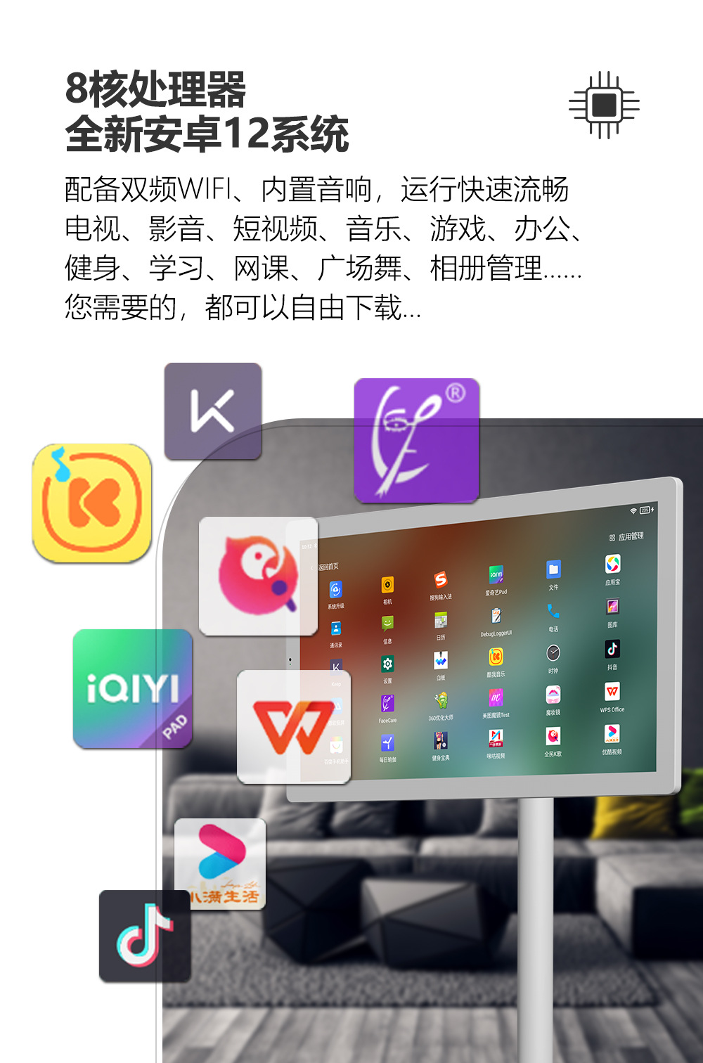 Mesin layar sentuh pintar nirkabel 22 inci, mesin tampilan layar besar, audio dan video TV multifungsi cerdas ponsel