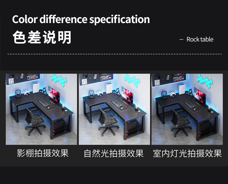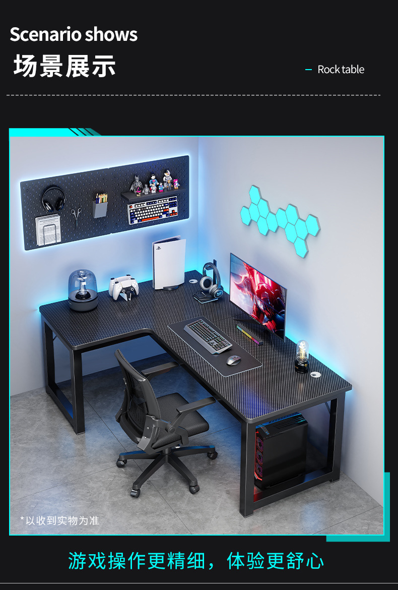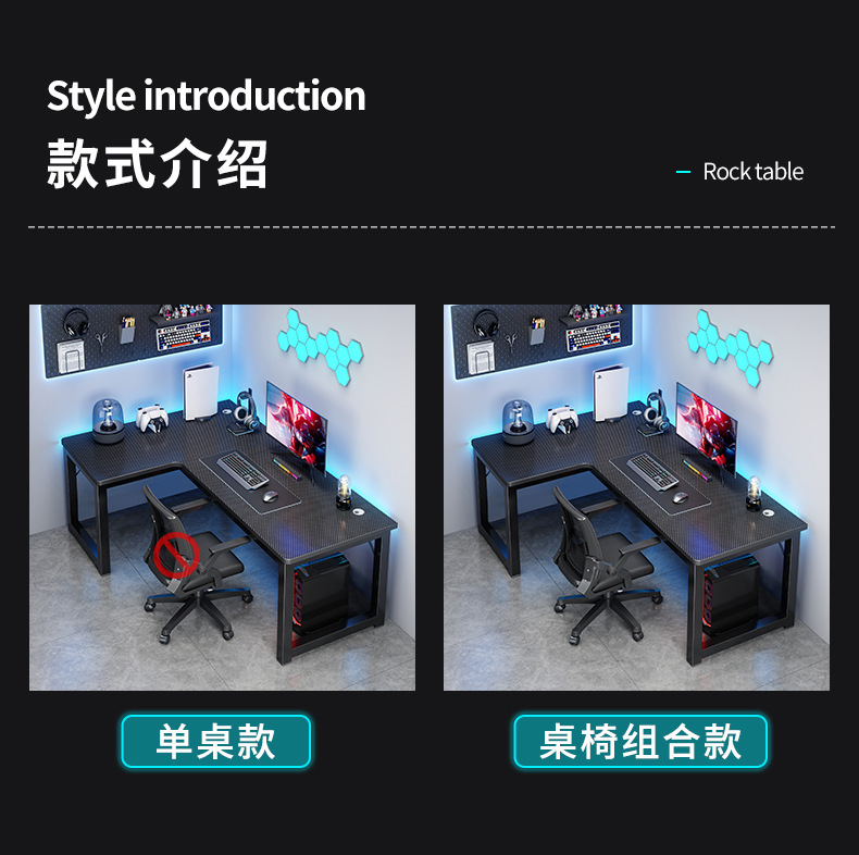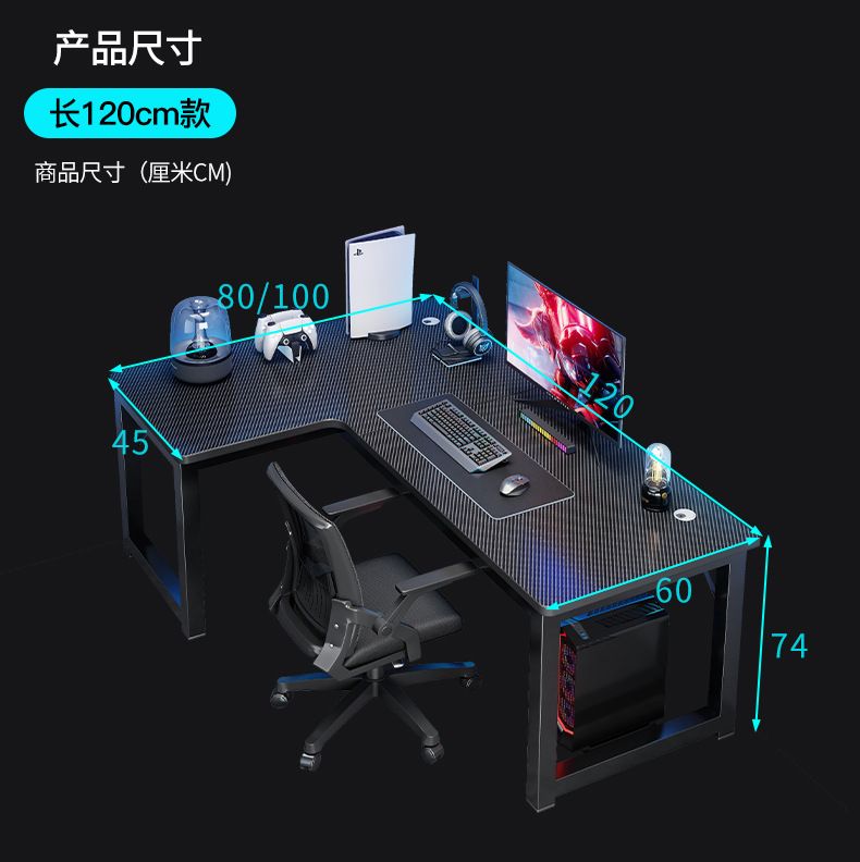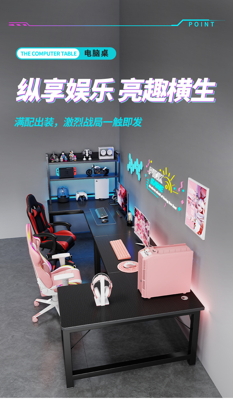 Meja sudut e-sport permainan ganda, meja kombinasi kursi dan meja komputer bentuk L sudut kamar tidur rumah