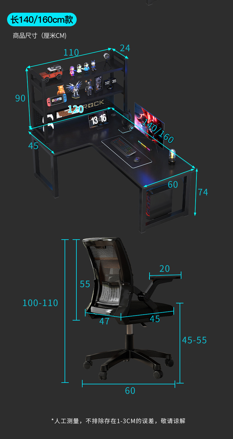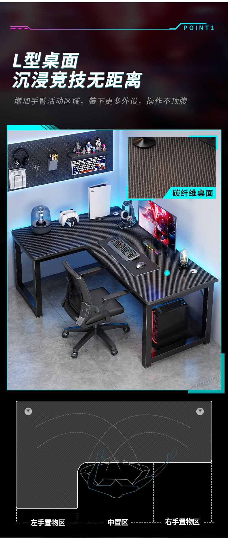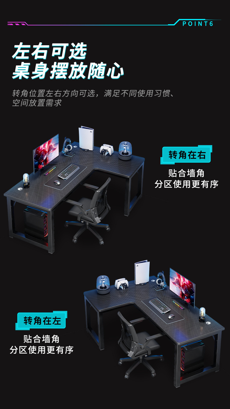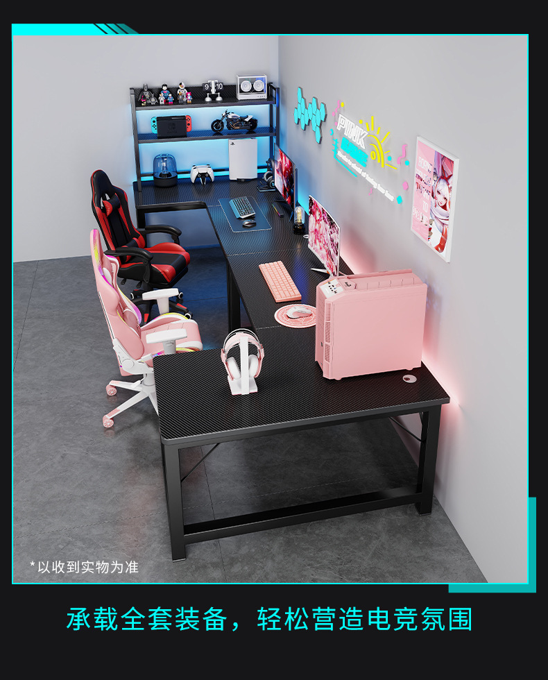 Meja sudut e-sport permainan ganda, meja kombinasi kursi dan meja komputer bentuk L sudut kamar tidur rumah