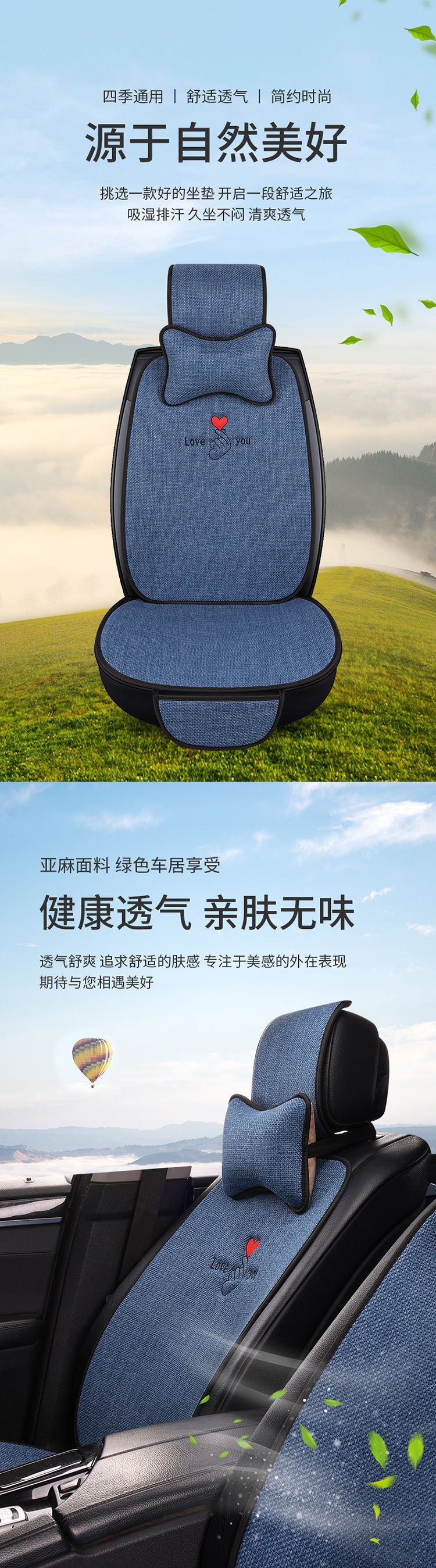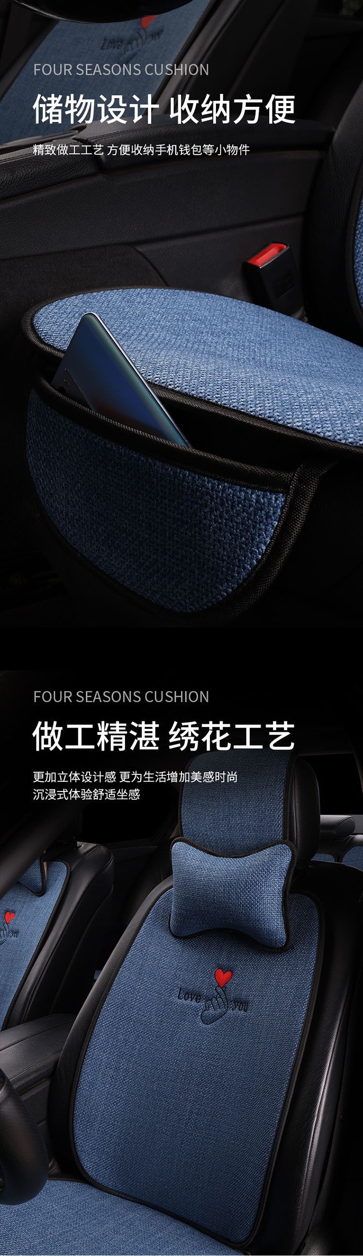 Alas Duduk Mobil Linen Model Baru Alas Duduk Universal Empat Musim Alas Duduk Ventilasi Musim Panas Alas Duduk Bersirkulasi Internet Alas Kursi Linen Katun Merah