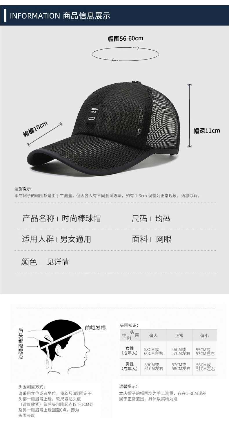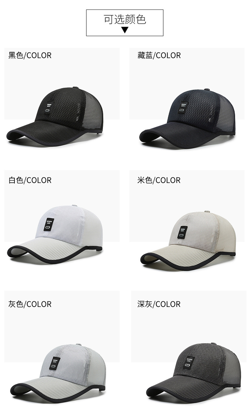 网帽男士夏天户外加长檐鸭舌帽防晒遮阳帽透气凉爽防紫外线钓鱼
