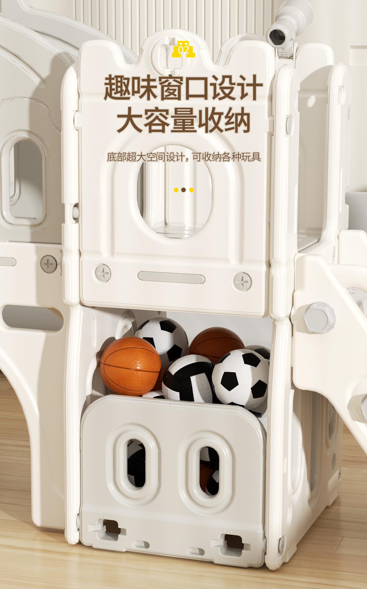 2.篮球框安装位置在大侧板上数下第二个孔洞,有匹配的的螺帽,详情看页面中的规格