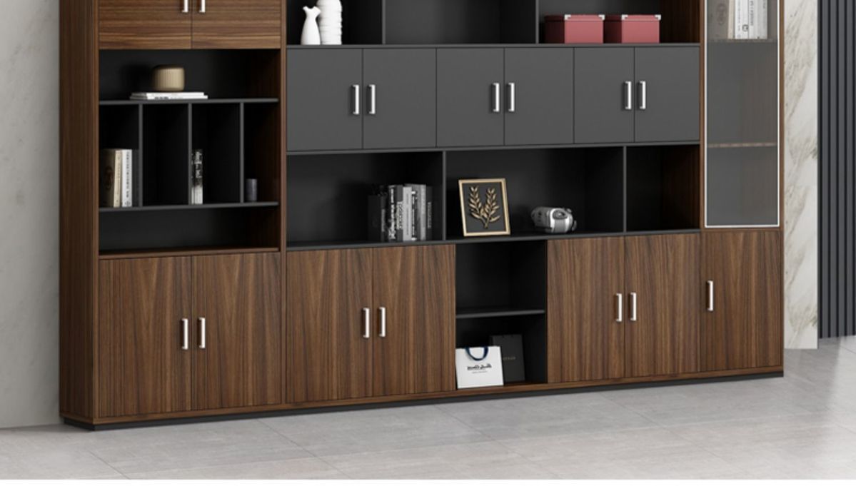 Kabinet partisi kabinet kikir kantor lemari buku modern sederhana loker berkas kayu lemari latar belakang kabinet lantai